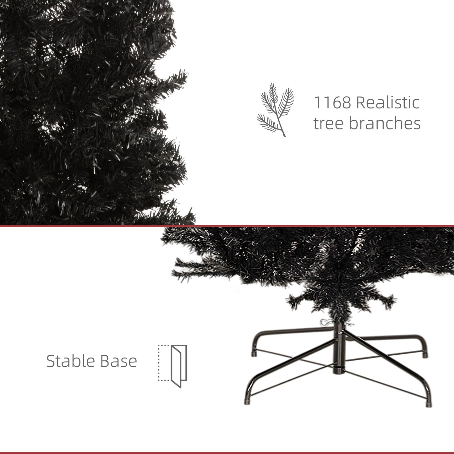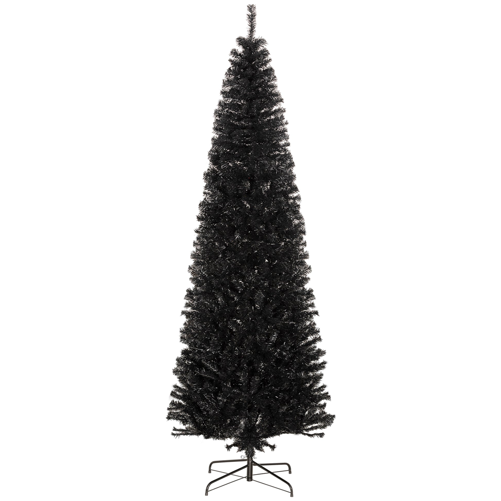HOMCOM 8ft Pencil Christmas Tree, Unlit Artificial Christmas Tree Slim Douglas Fir Xmas Tree with Realistic Branches, Halloween Tree with 1168 Tips, Black