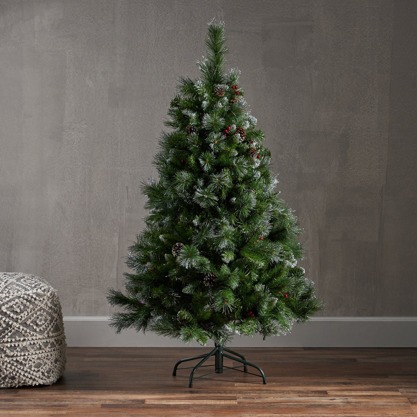 - 4.5 ' Glitter Bristle Mixed Hinged Tree with Red Berry and Pine Cones and 200 CL,407 tips