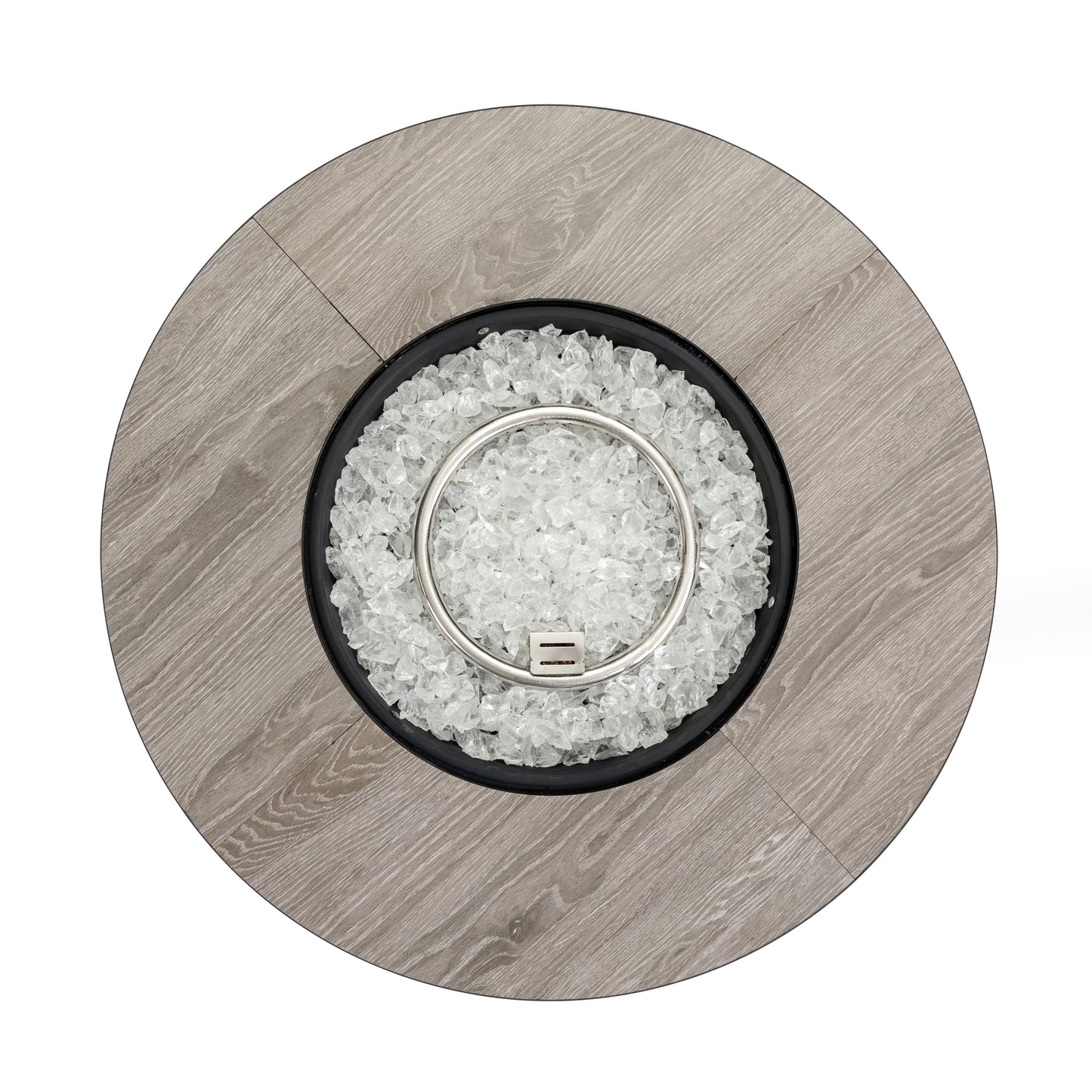 Aesthetic Appeal: White glass rocks add elegance and contrast to the fire pit, complementing the dark burner and wood - grain tabletop for a refined look.