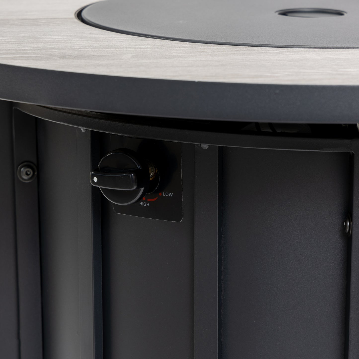 30' Propane Gas Fire Pit Table, 50000 BTU Round Steel Fire Pit with Wood Grain Ceramic Tabletop for Outside Patio Deck Garden Backyard- Black