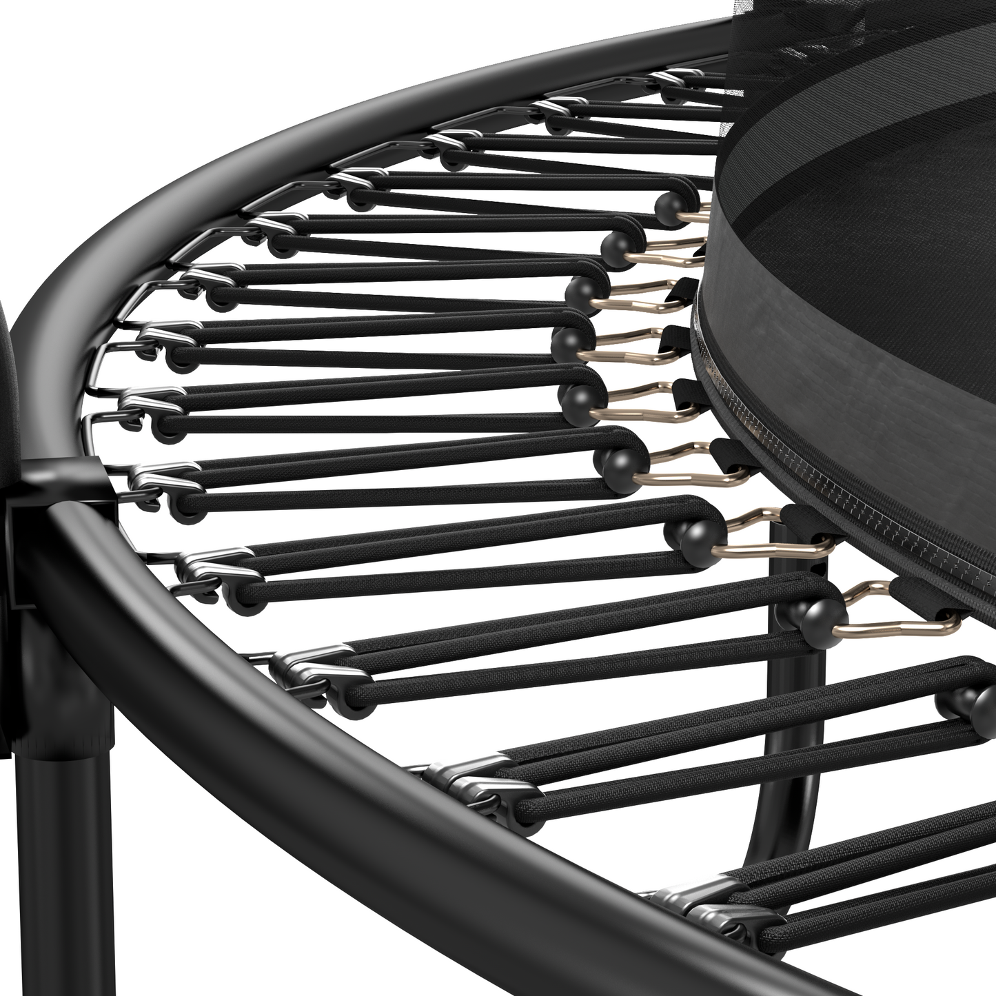 - Safer than metal springs. Sometimes metal springs broke and burst out, it may hurt the user or people around the trampoline. Soft bungee cords never has such issue.