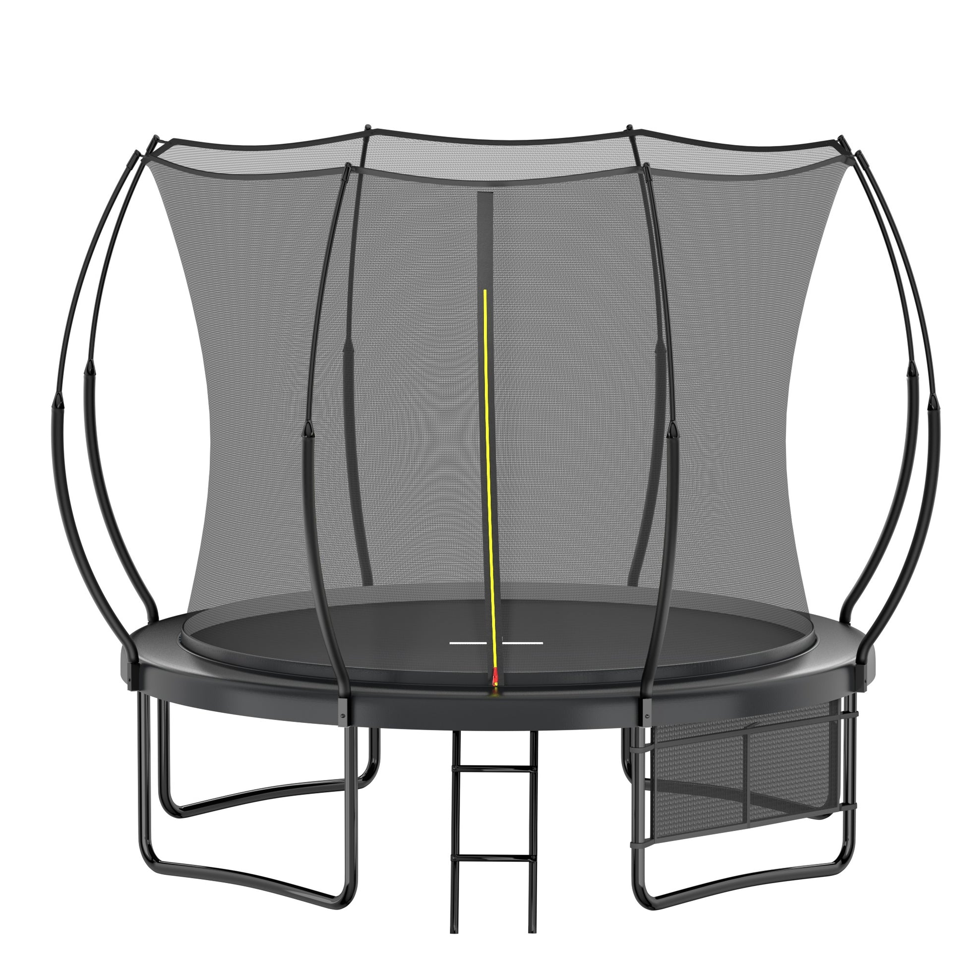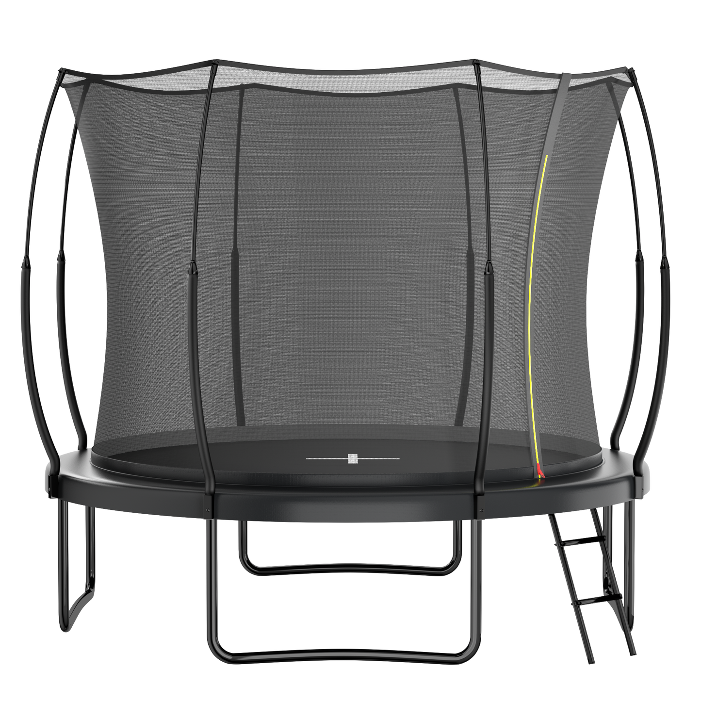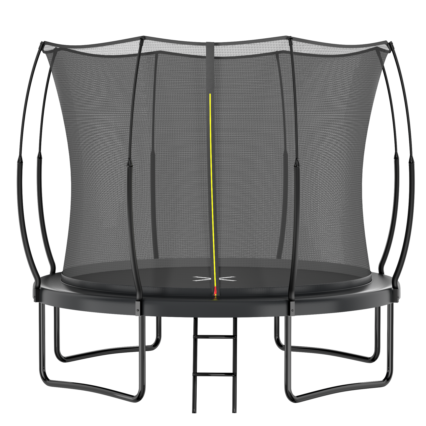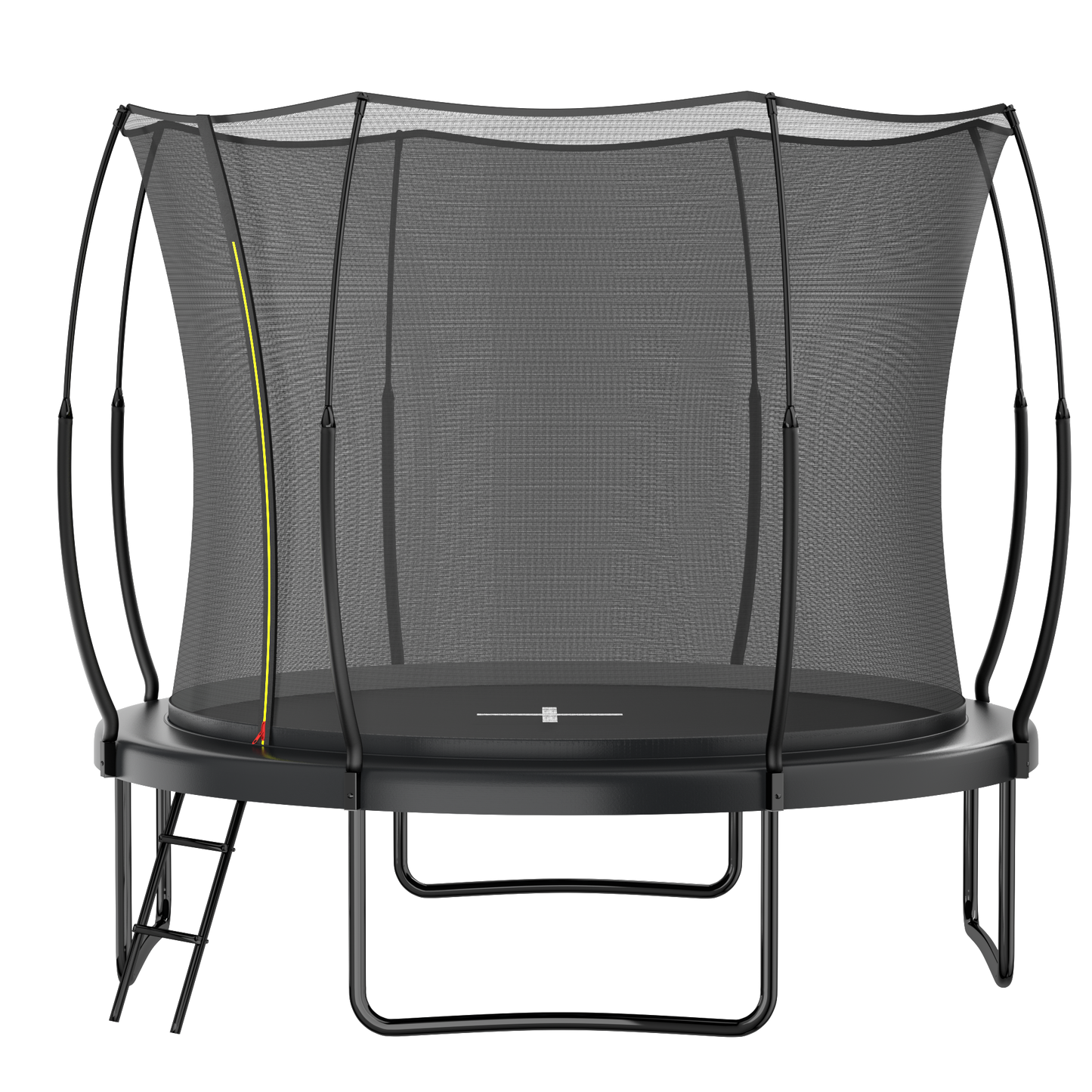 - Our outdoor trampolines have galvanized steel frames, the legs and T-connectors powder coated for long time anti-rust outside. ensuring durability, weather resistance, and rust prevention. Equipped with 4 W-shaped leg tubes, it offers enhanced stability and sturdiness.