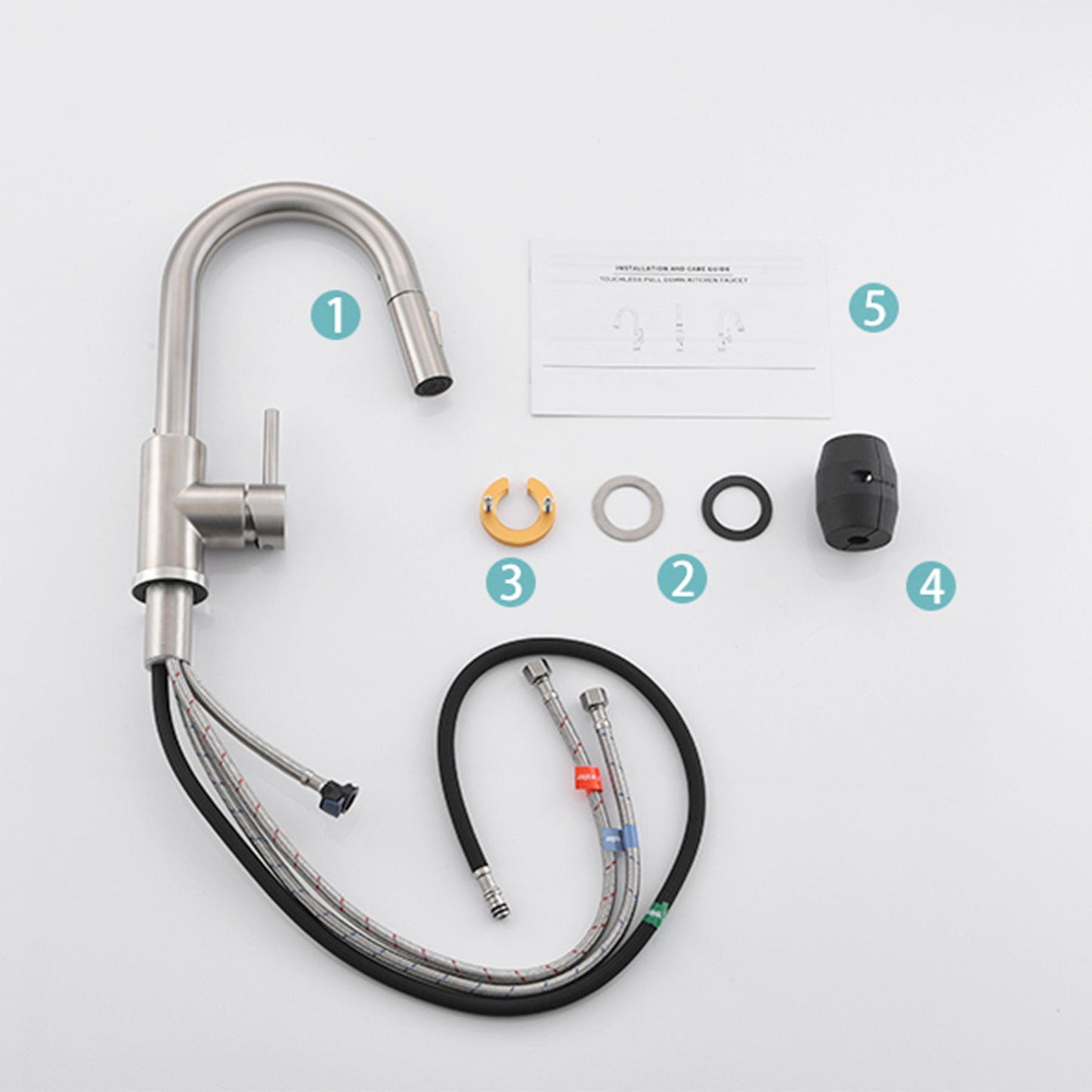 ?【 Pull Out Spray 】This pull down bar faucet with counterweight to lock firmly in place, and the sprayer head will automatically retract after each use.The 24' (60 cm) flexible hoses are already installed on the prep sink faucet, convenient and safe.