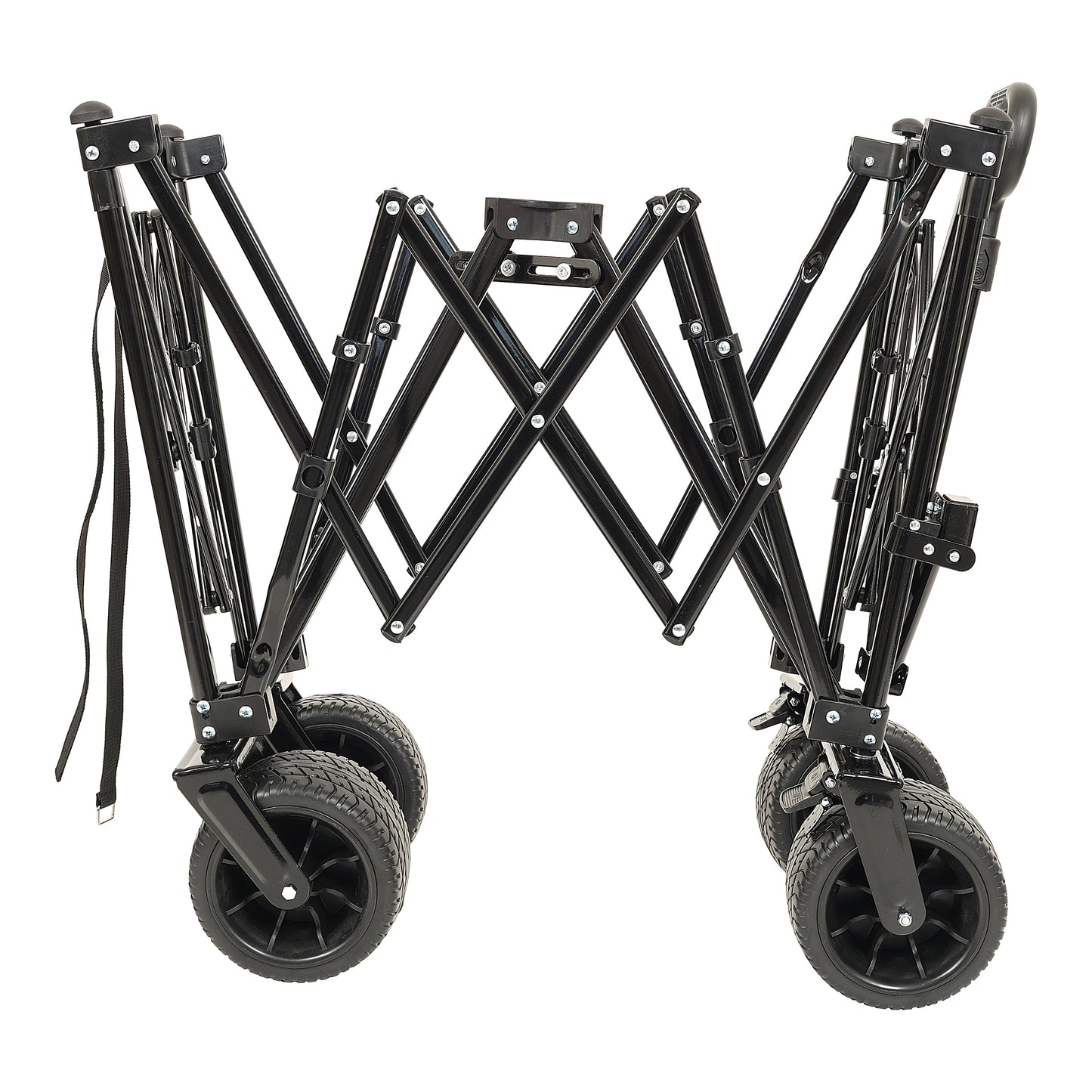 Collapsible Foldable Extended Wagon with 480lbs Weight Capacity, Heavy Duty Folding Utility Garden Cart with Big All-Terrain Beach Wheels & Drink Holders,Side Pocket and Brakes for Camping Sports