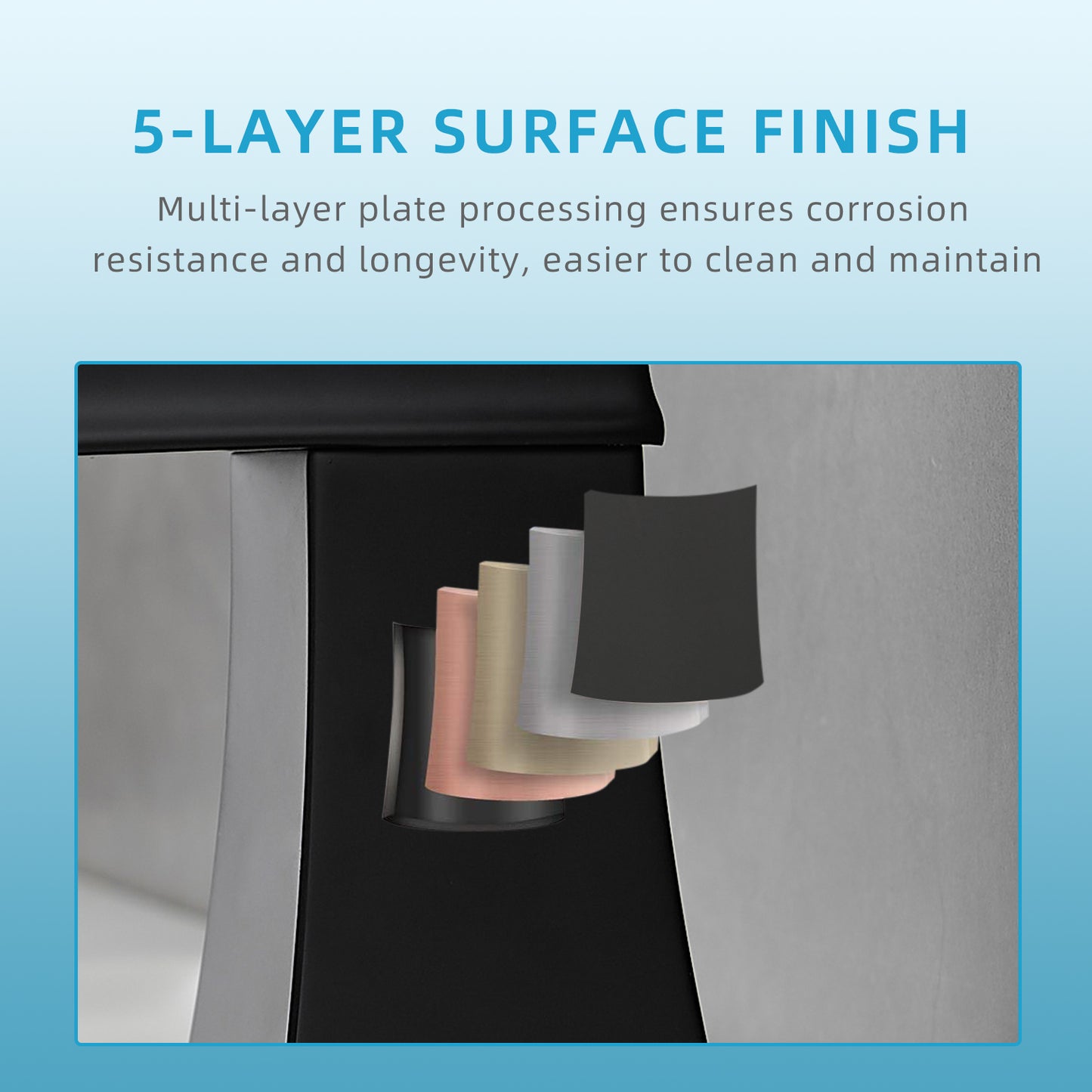 DURABLE MATERIAL, solid high quality brass construction black bathroom faucet, resistant to rust from daily use. The matte black finish creates a vintage look that adds a touch of stately elegance to any room.