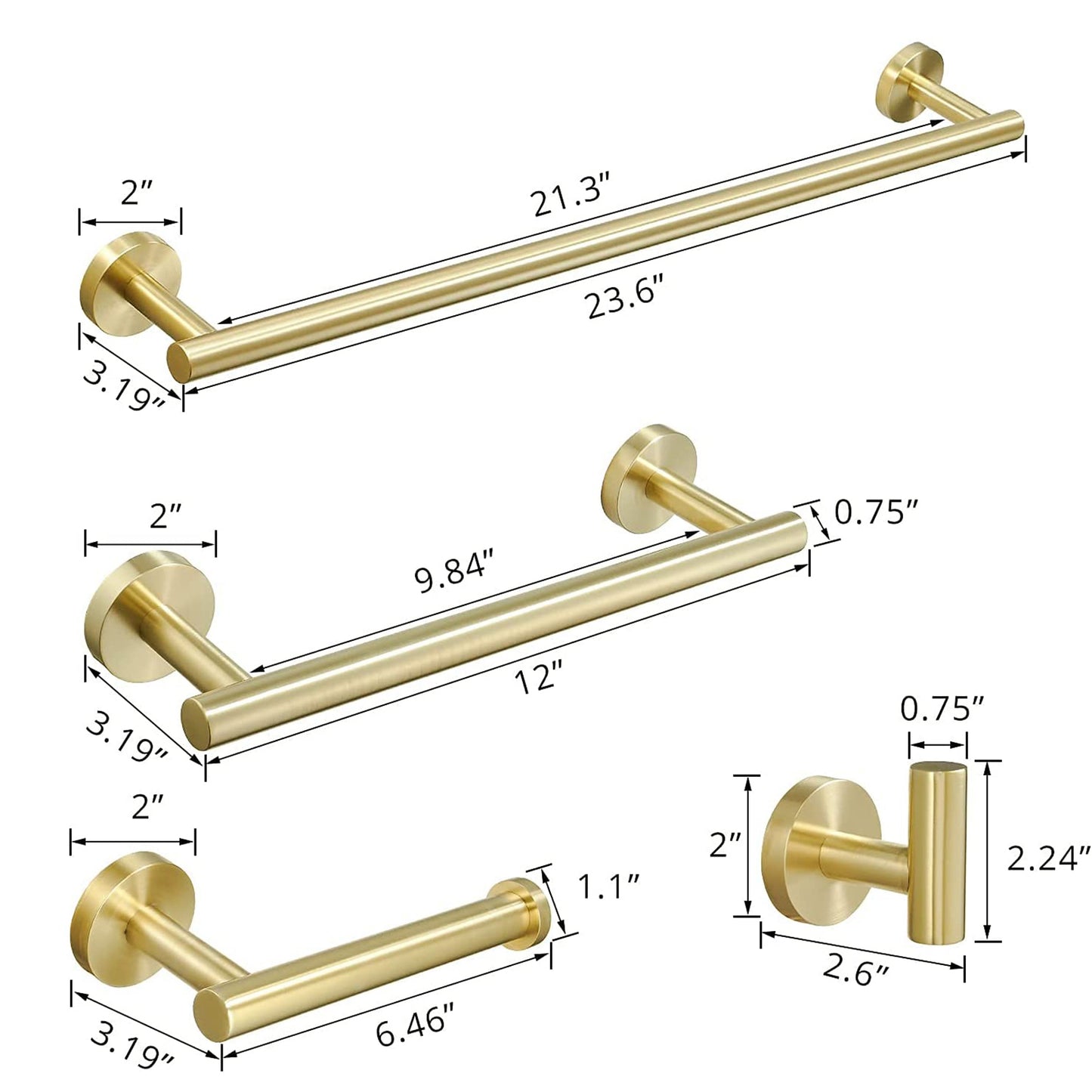 4-Pieces Brushed Gold Bathroom Accessories Set, Stainless Steel Bathroom Hardware Set