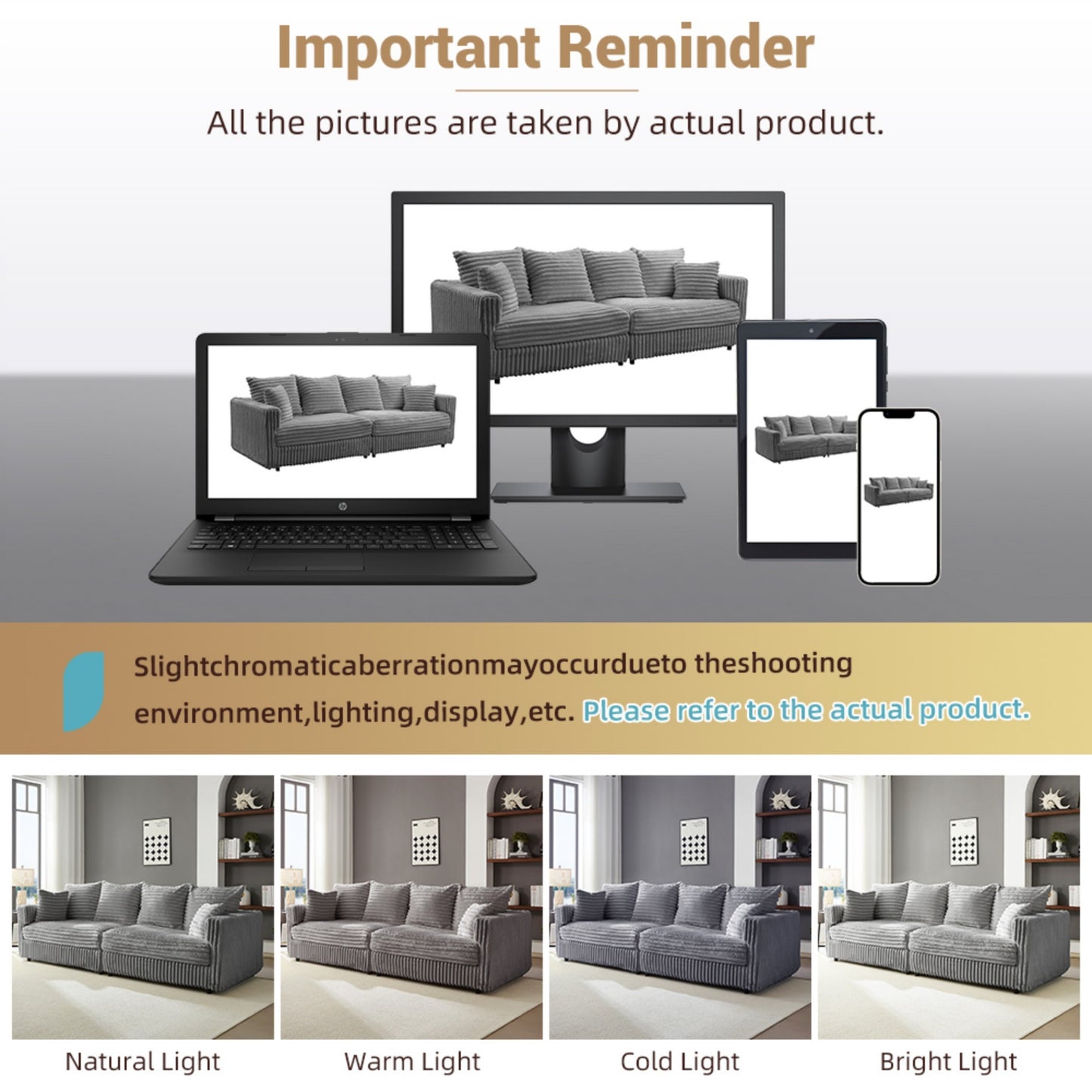 104.3' Plush Corduroy 4-Seat Sofa,Modern Comfy Upholstered Sofa Cloud Couch,Deep Seat Couches with Soft Pillows,Convertible Deep Seat Sofa Lounge Chair for Living Room Bedroom,Apartment,Office