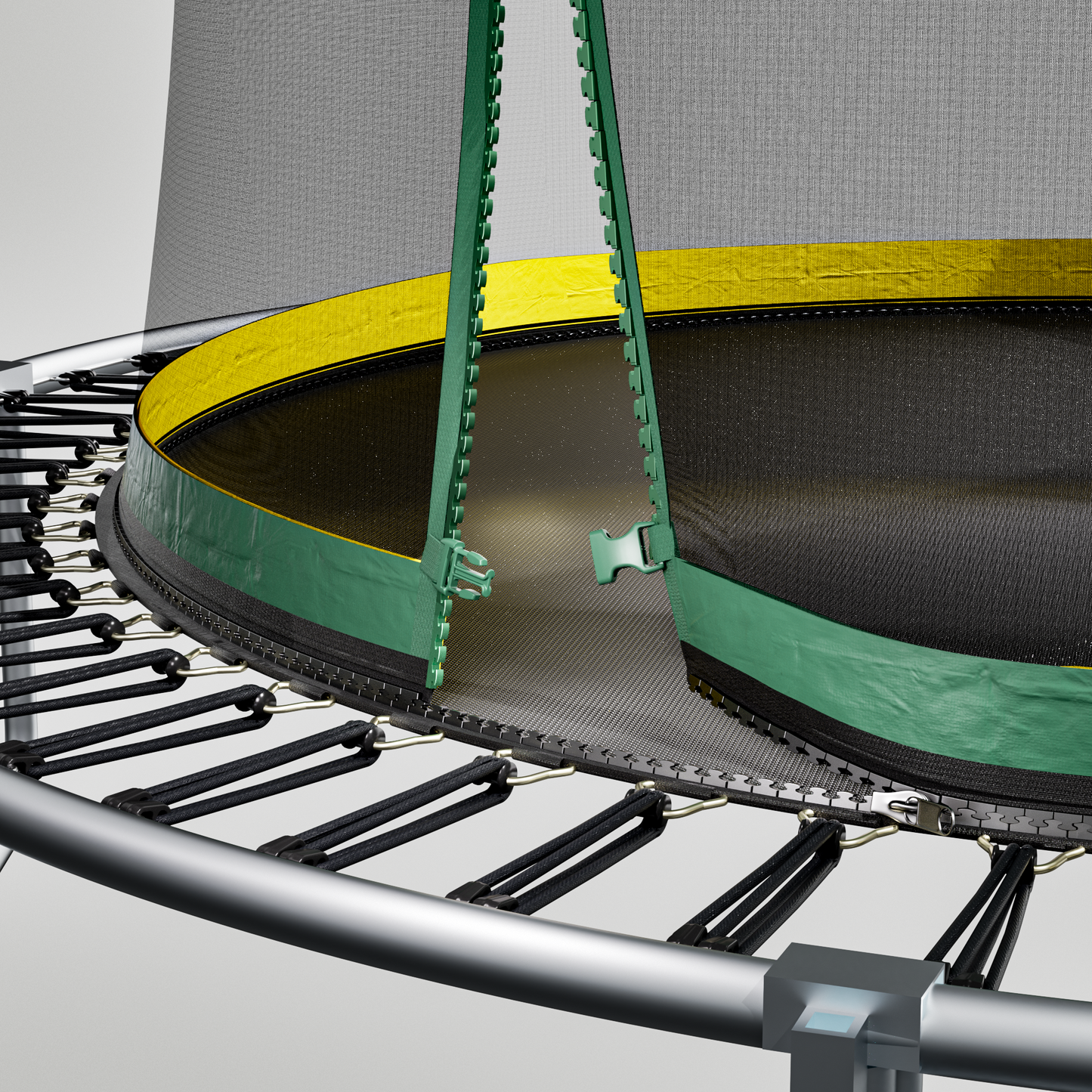 - Bottom safety net is fixed to jumping mat by zip, completely closed, no gap no foot entrapment, so kids are bounded safety in the net. Zip also for fast assembly, and easy to replace.