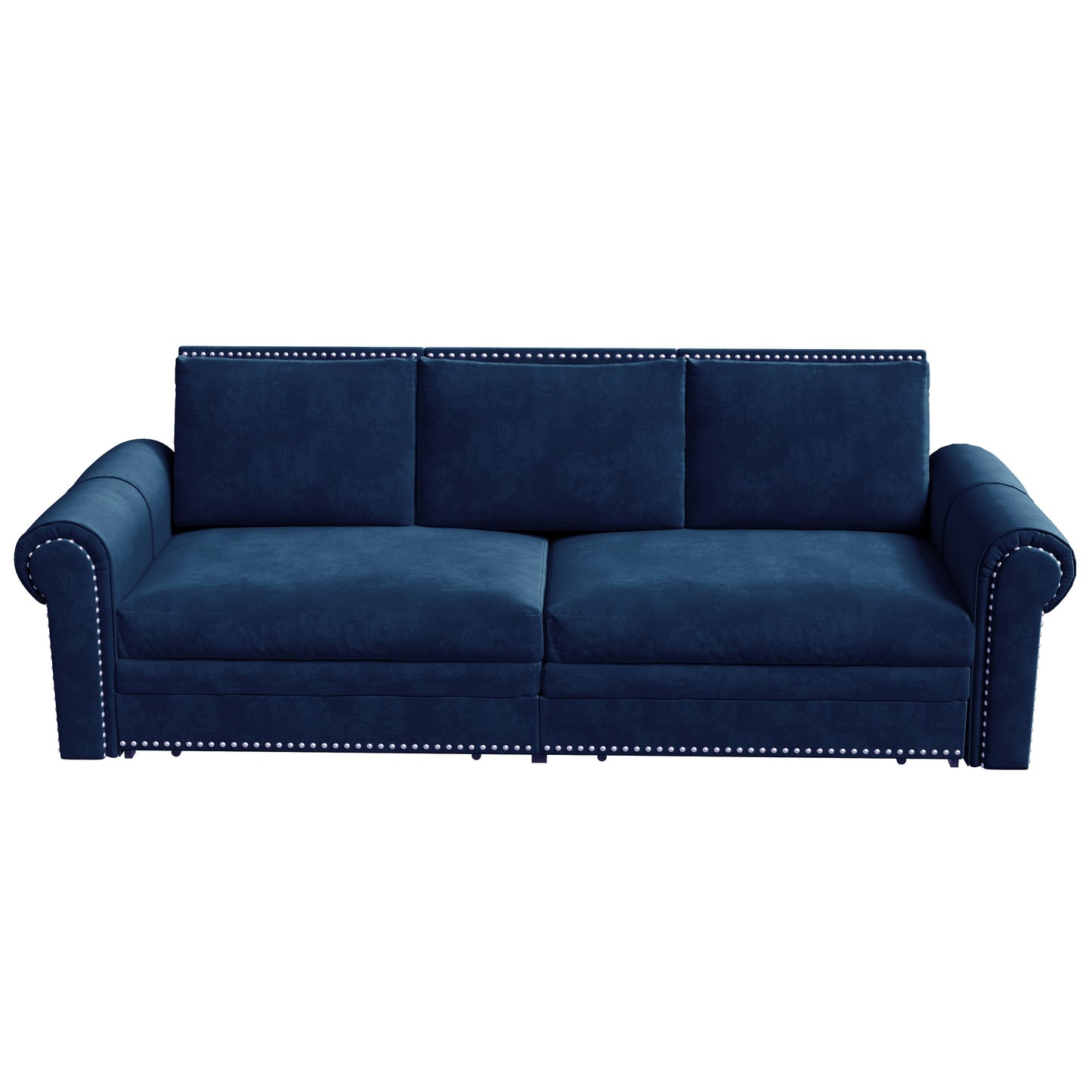 93.7 ' King Pull Out Sofa Bed, Chesterfield Sofa, 3-in-1 Velvet Convertible Sleeper Sofa with Nailhead Trim & Rolled Arm, Multi-Functional Sofa Bed for Living Room, Bedroom, Apartment, Office, Blue