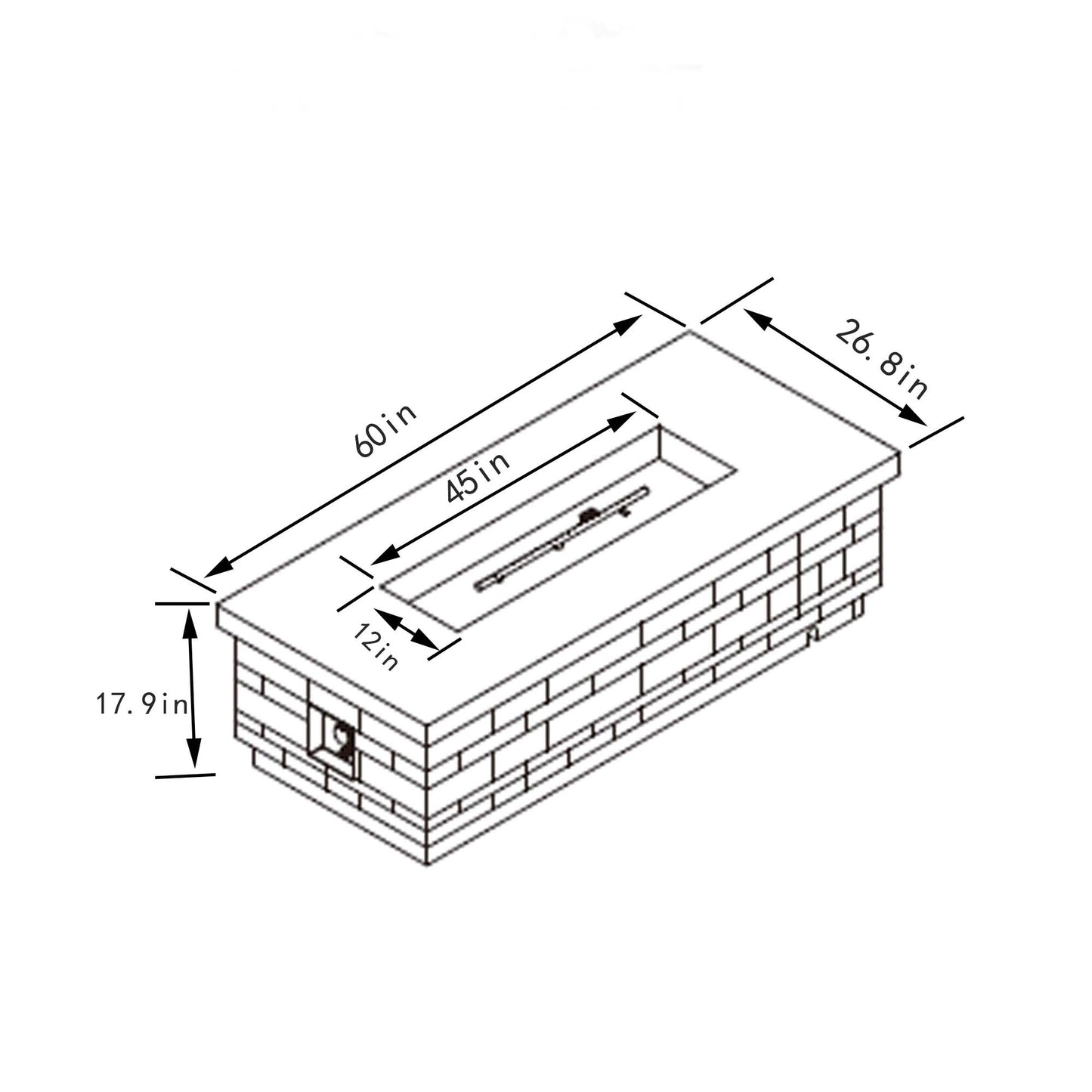 Outdoor Gas Fire Pit Table 60000 BTU Concrete Rectangle Fire Pit
