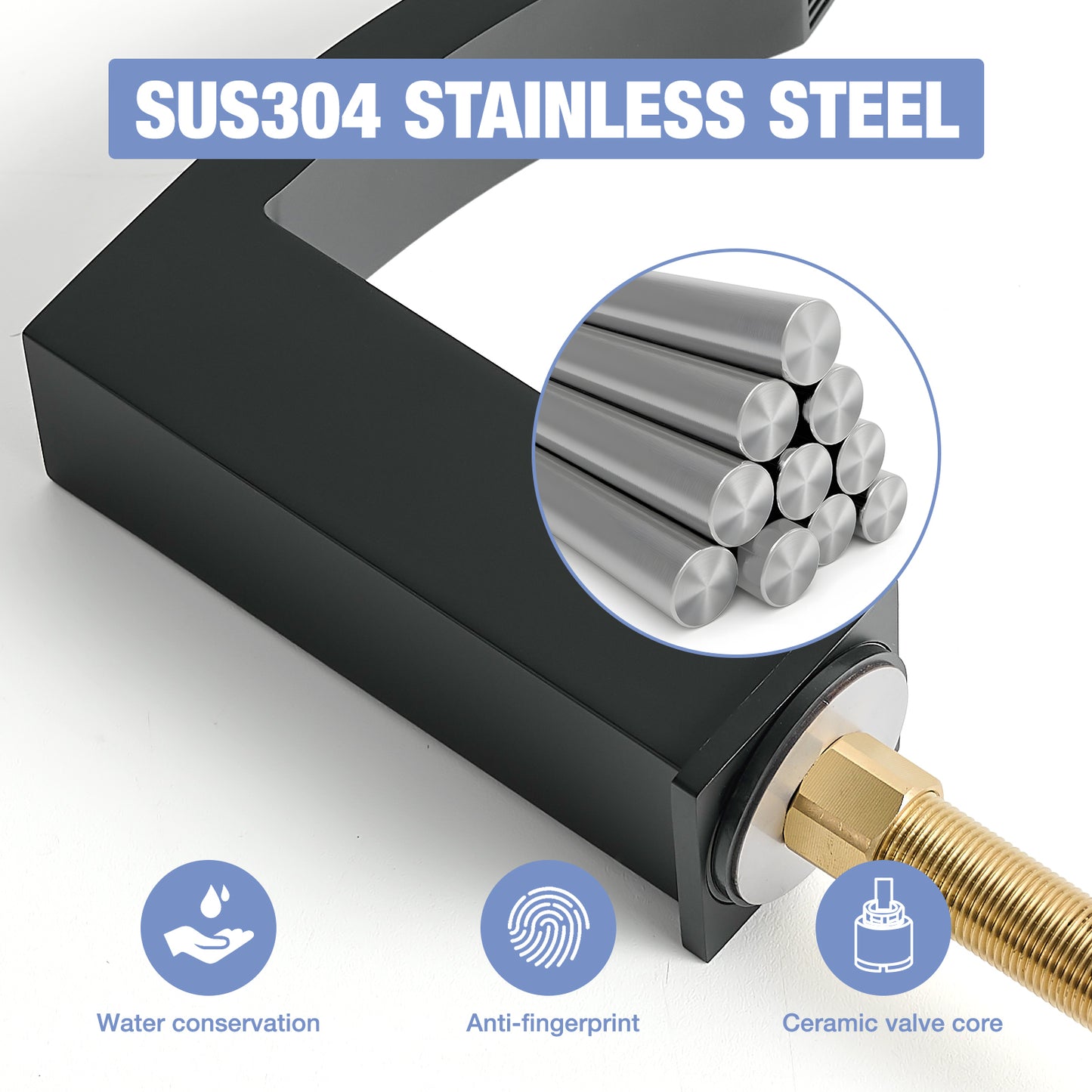 Safety & Solid Material ---- This bathroom faucets is 304 stainless steel, provide safe drinking water for your daily life. Adopt precise ceramic valves, avoid dripping and leaking, ensure long-lasting durability. Safe and solid bathroom faucets improve your life quality.