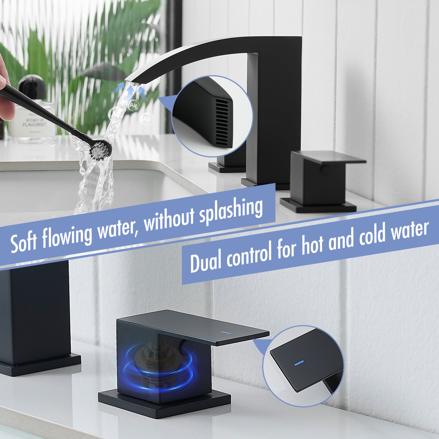 - Matte Black Widespread Basin Mixer Tap Faucet With Supply Line