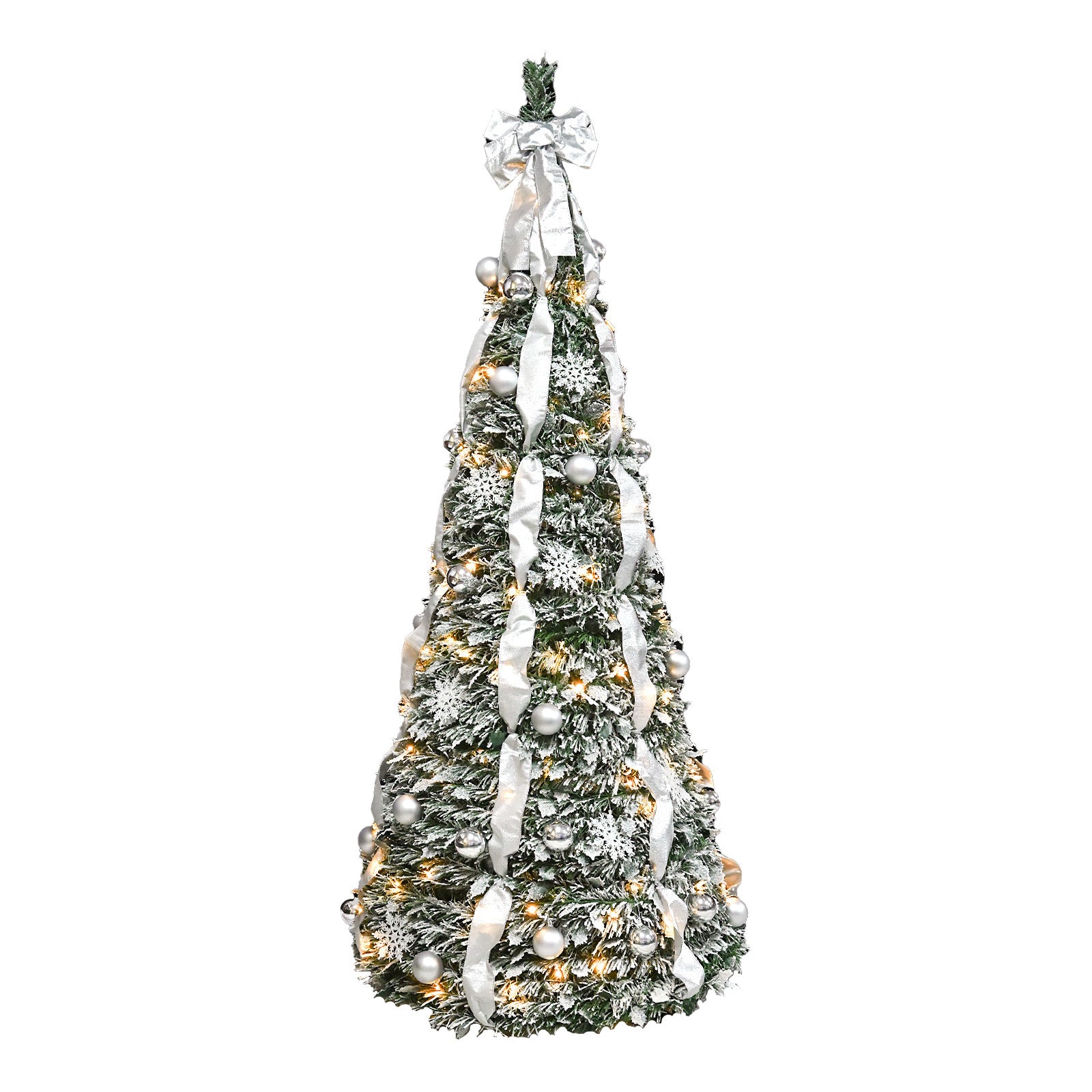 - Instant Setup with Space-Saving Pop-Up Design - Say goodbye to messy tree setups! This flocked pop-up tree unfolds in seconds with no tools or fluffing required. Great for small spaces like apartments, offices, or dorms.