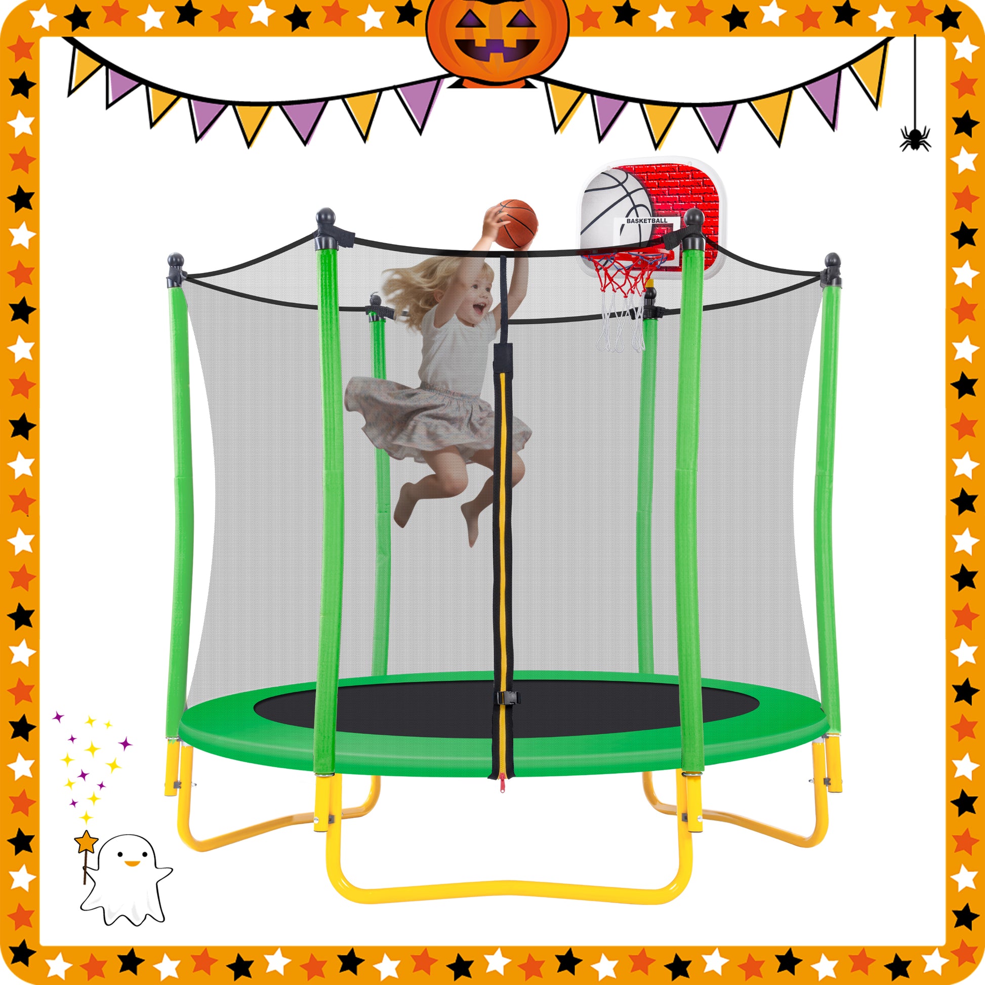 5.5FT Trampoline for Kids - 65' Outdoor & Indoor Mini Toddler Trampoline with Enclosure, Basketball Hoop and Ball Included