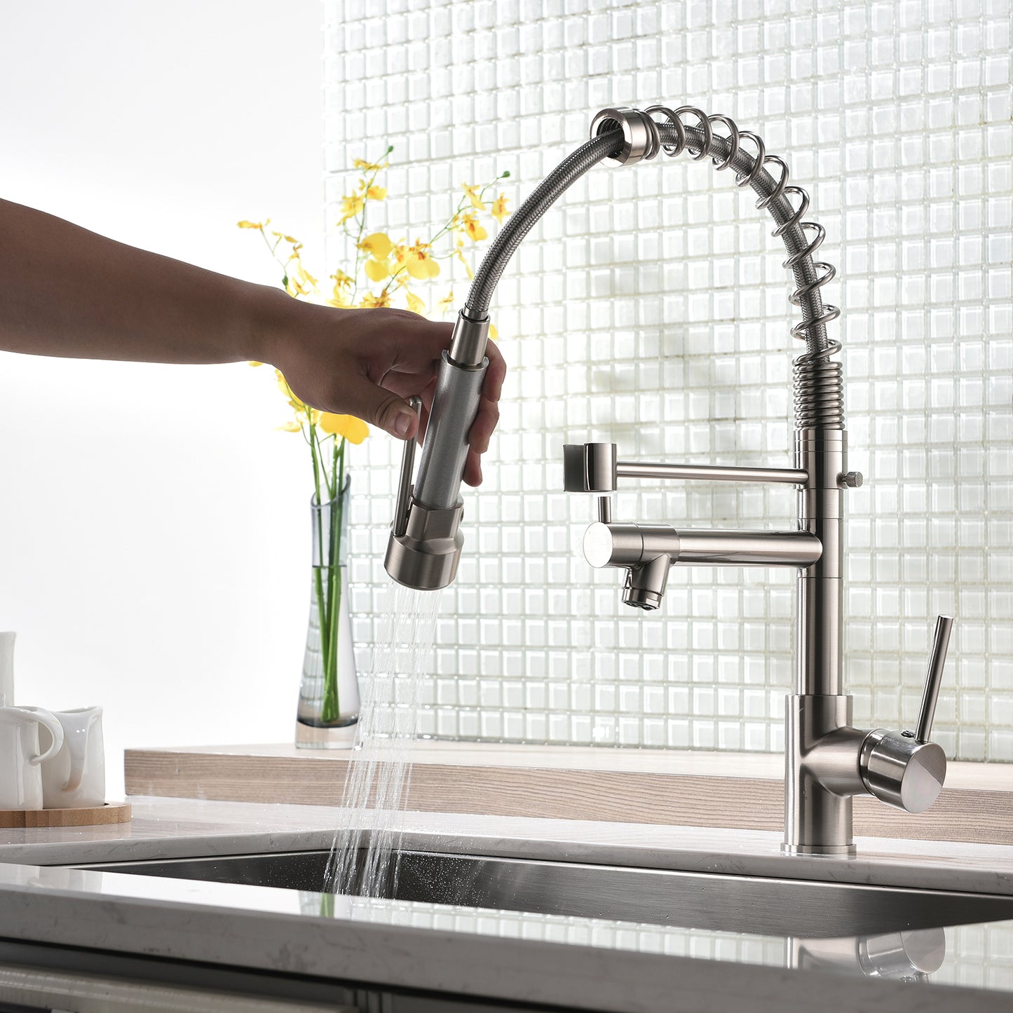 Commercial Kitchen Faucet with Pull Down Sprayer, Single Handle Single Lever Kitchen Sink Faucet