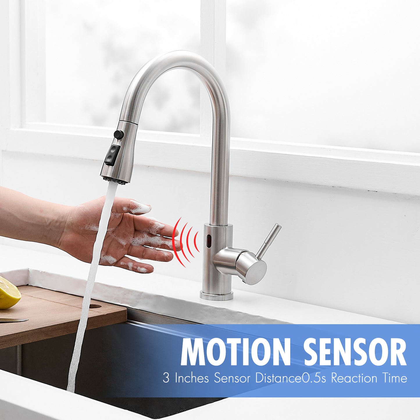 - Motion Sensor Technology Brushed Nickel Touchless Kitchen Faucet