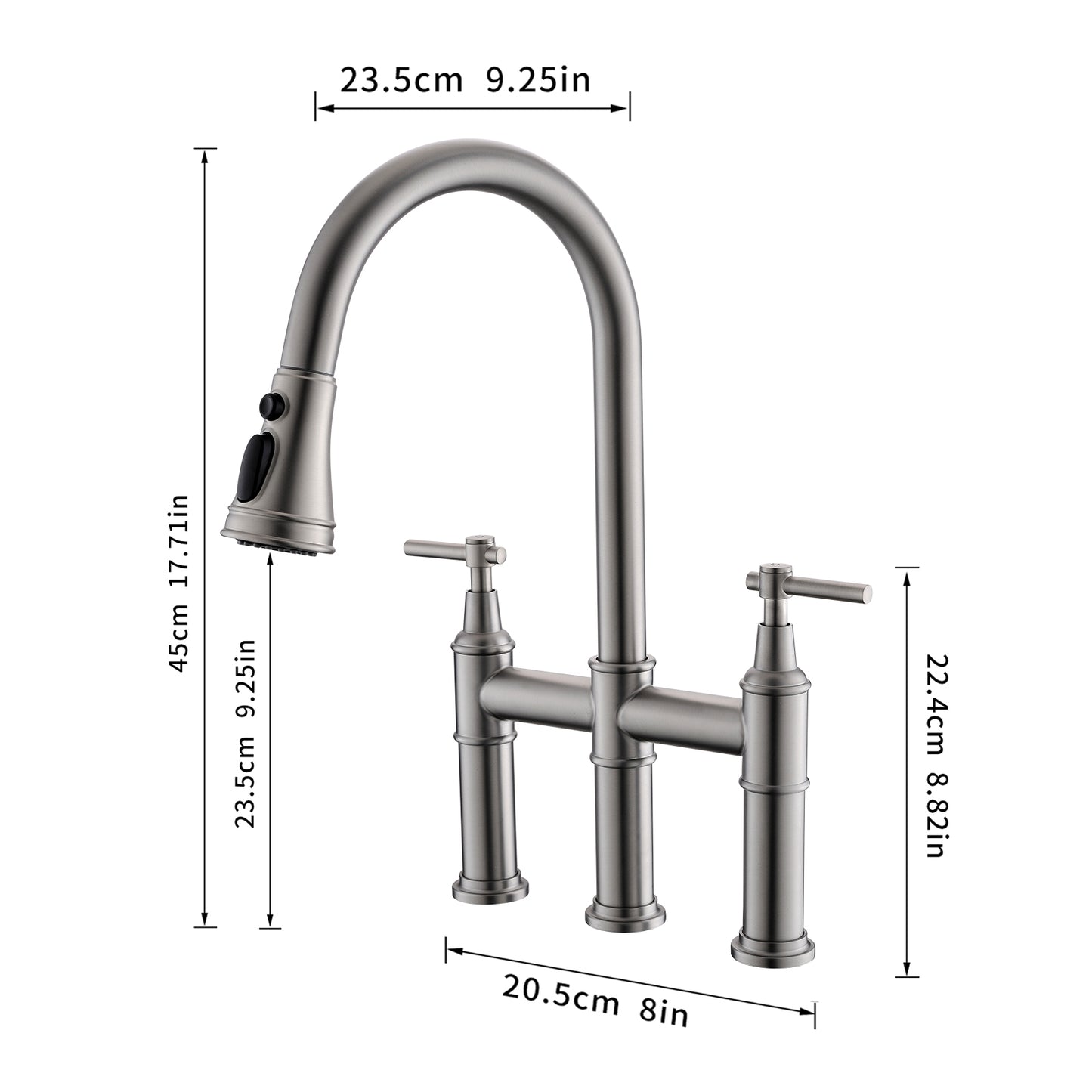 - Bridge Kitchen Faucet with Pull-Down Sprayer