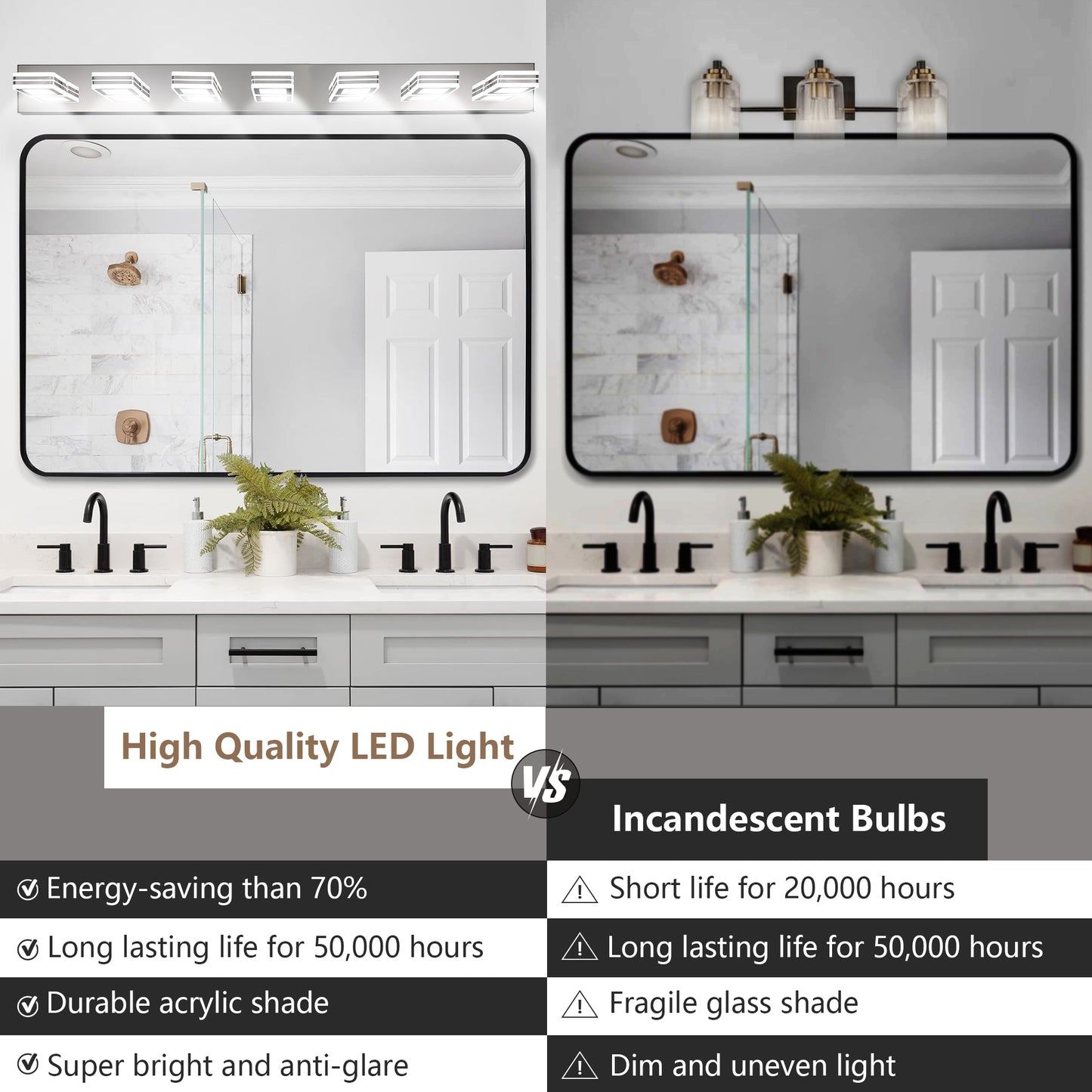 45' Modern Chrome 7-Light LED Vanity Light, Square Acrylic Lampshades Wall Mount Fixture for Bathroom, Mirror Lighting