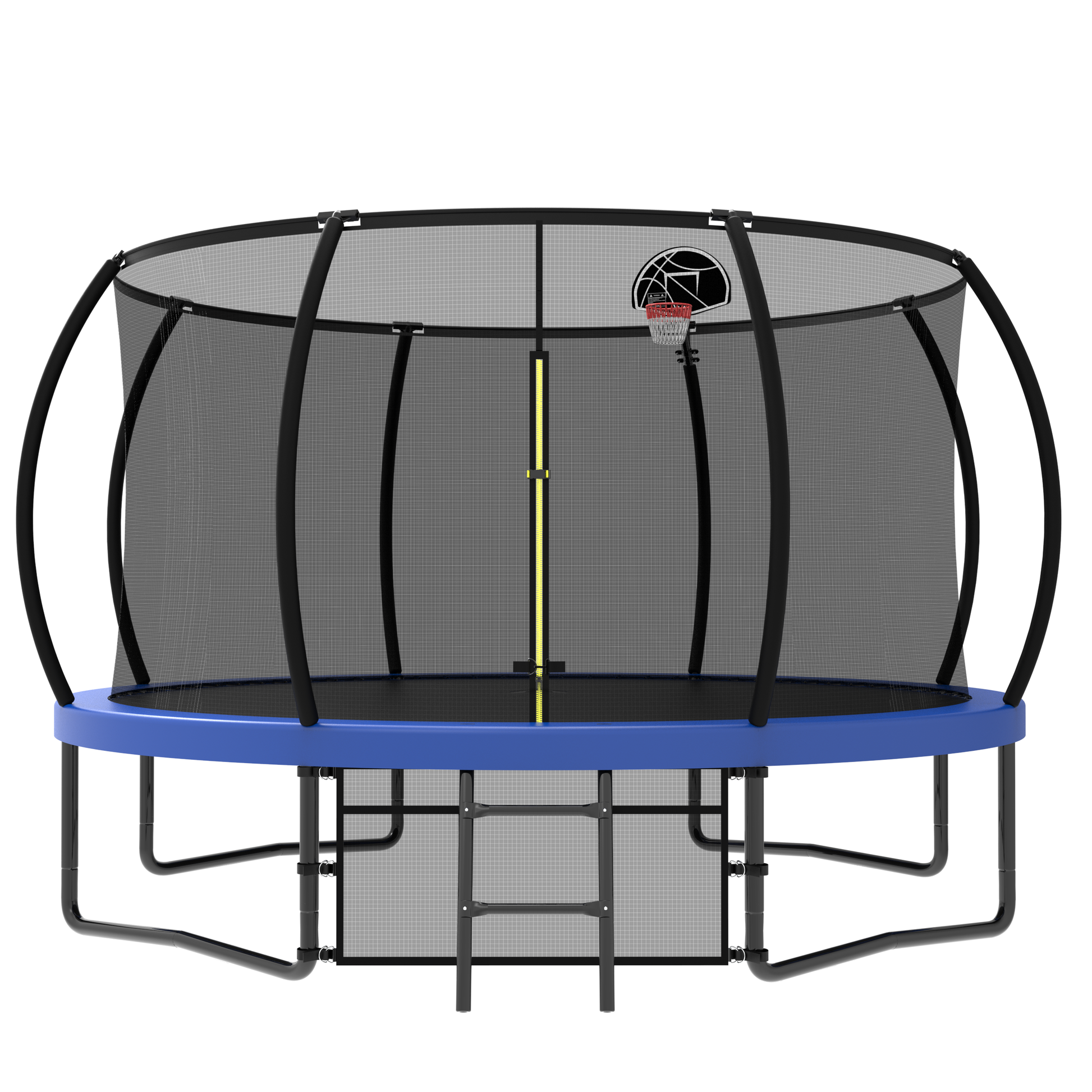 Pumpkin Style 12FT Kids Trampoline with Safety Enclosure Net & Ladder, Blue Steel