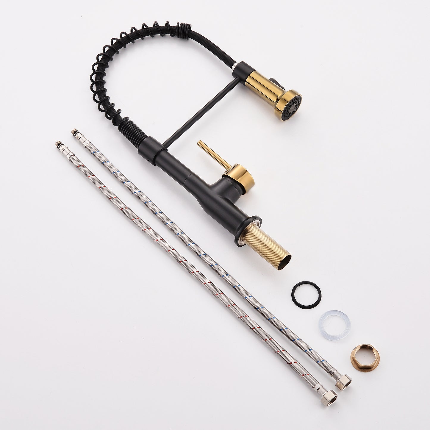 Commercial Black and Nickel Gold Kitchen Faucet with Pull Out Sprayer, Single Handle Single Lever Kitchen Sink Faucet