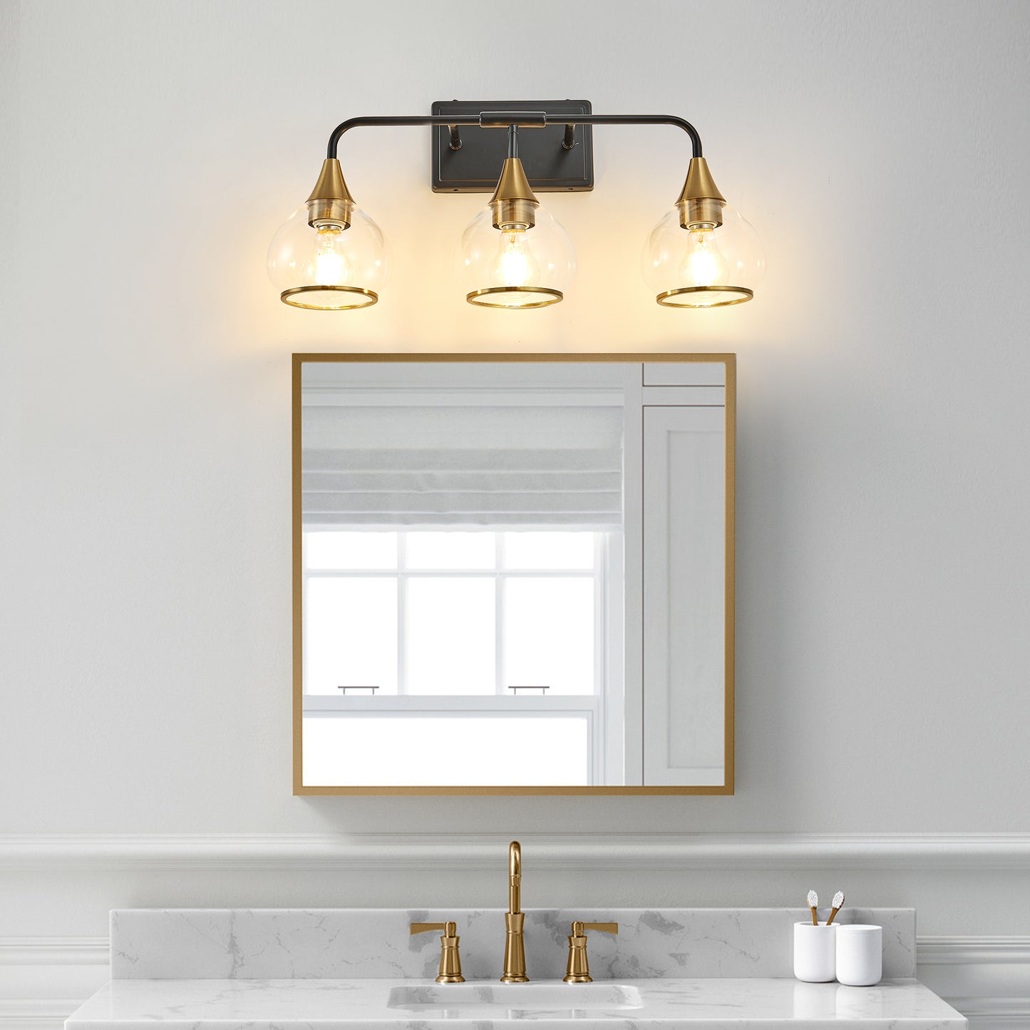 23' Modern 3-Light Vanity Wall Sconce - Black and Gold Bathroom Light Fixture with Clear Glass Shades, Industrial Wall Mounted Lamp for Mirror, Vanity, and Living Spaces (Bulb Not Included)