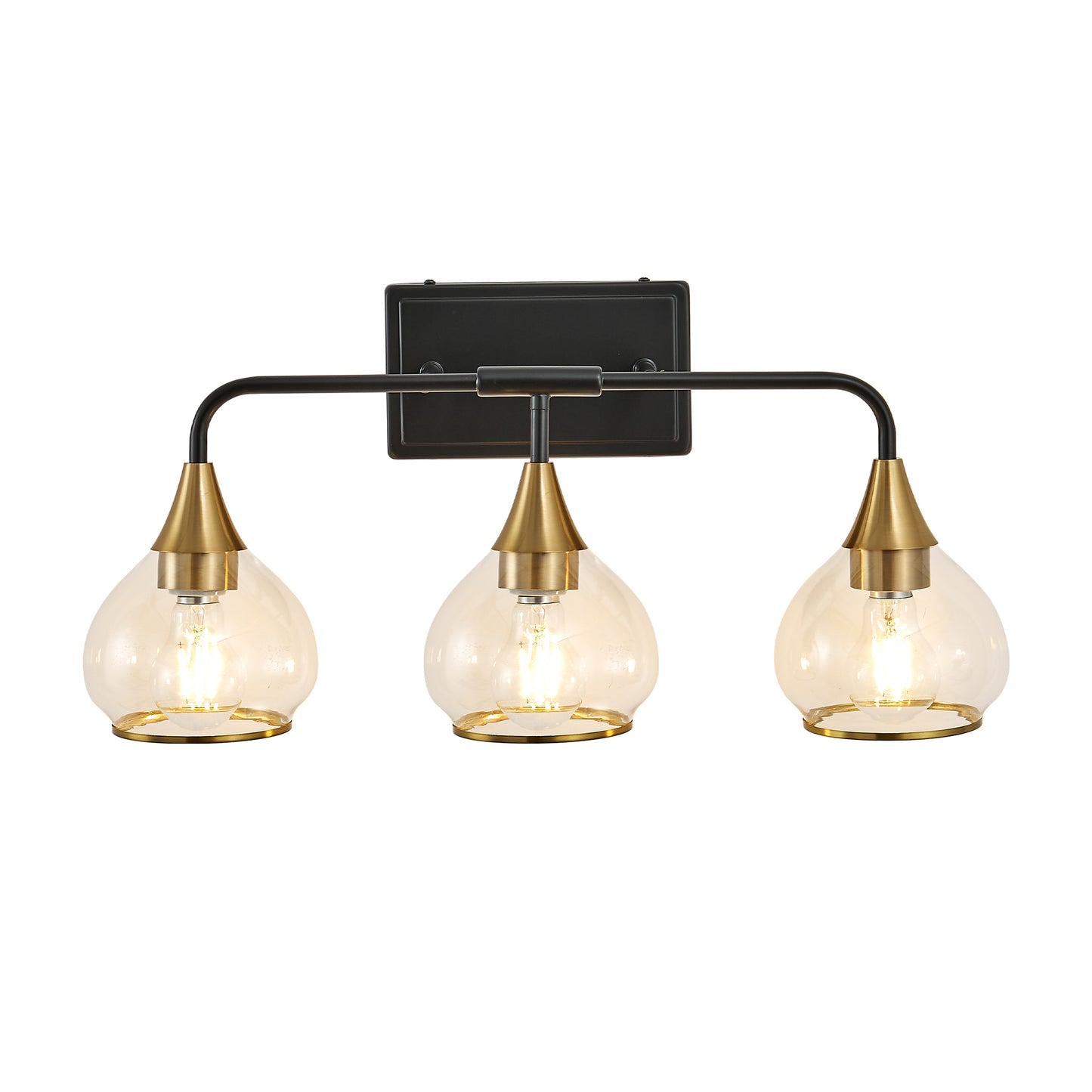 23' Modern 3-Light Vanity Wall Sconce - Black and Gold Bathroom Light Fixture with Clear Glass Shade