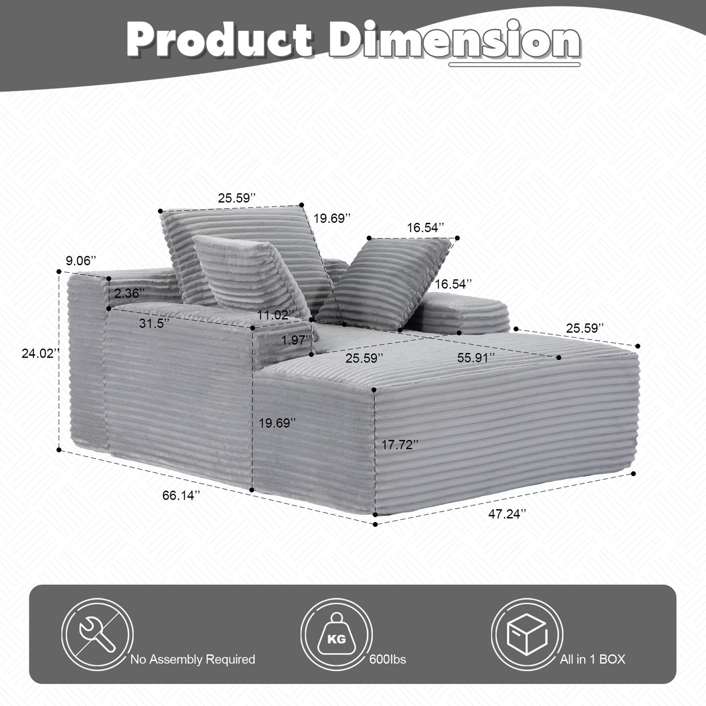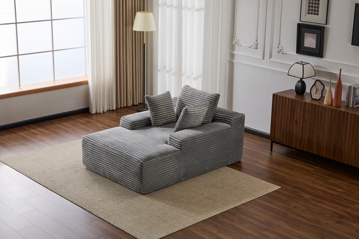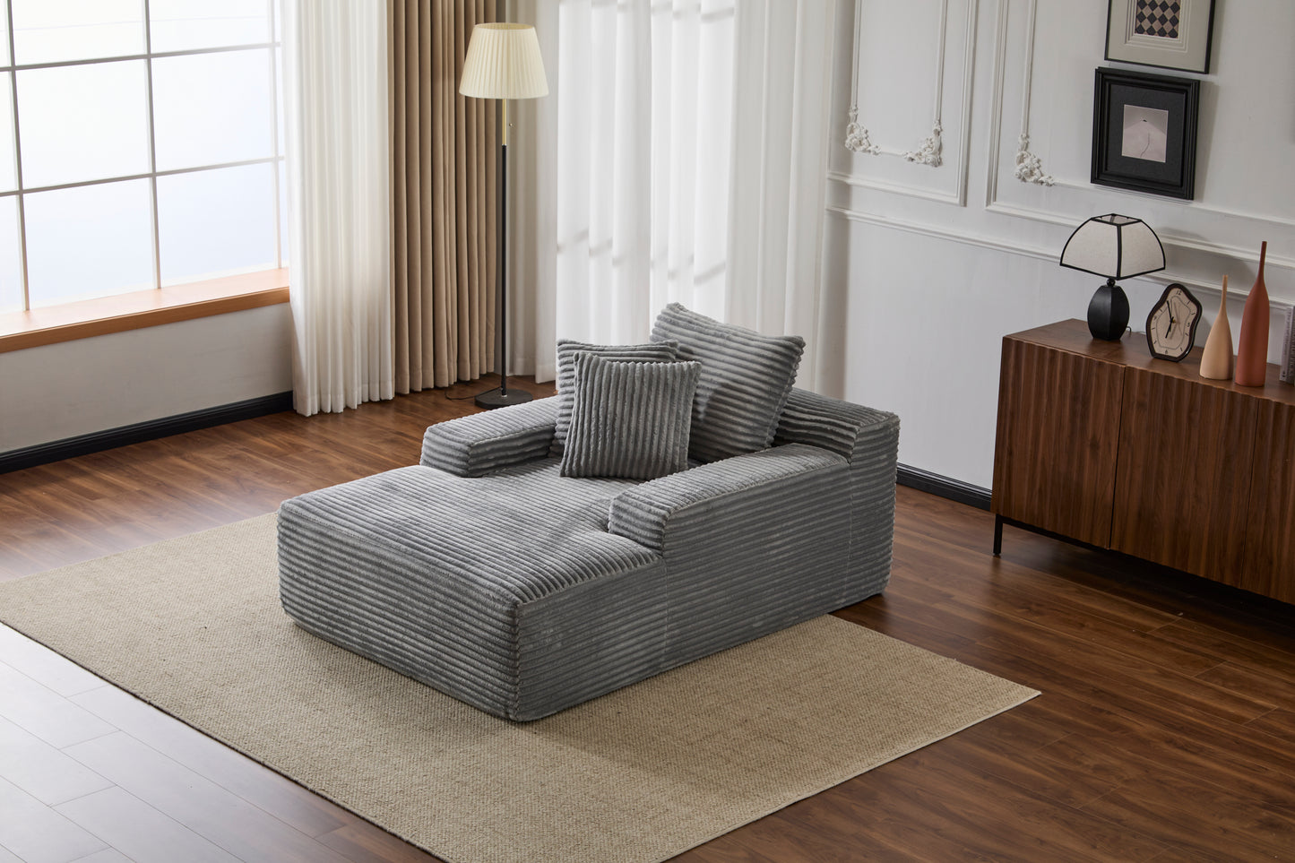 Oversized Chaise Lounge Chair Cozy Cloud Couch, Modern Plush Corduroy Upholstered Sleeper Sofa Daybed with 3 Throw Pillows and Wide Armrest for Living Room, No Assembly Required,Grey