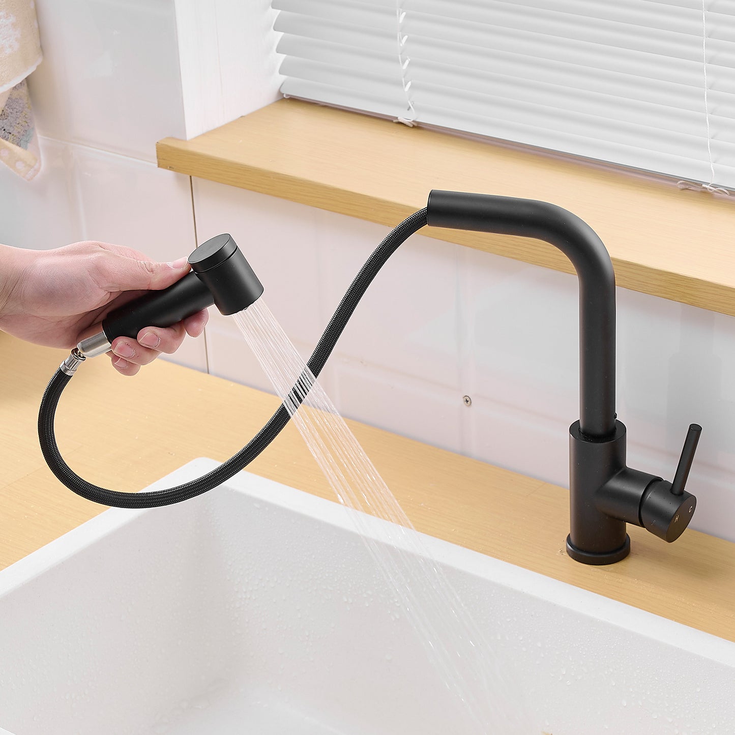 - Matte Black Kitchen Sink Faucet with Pull Out Sprayer