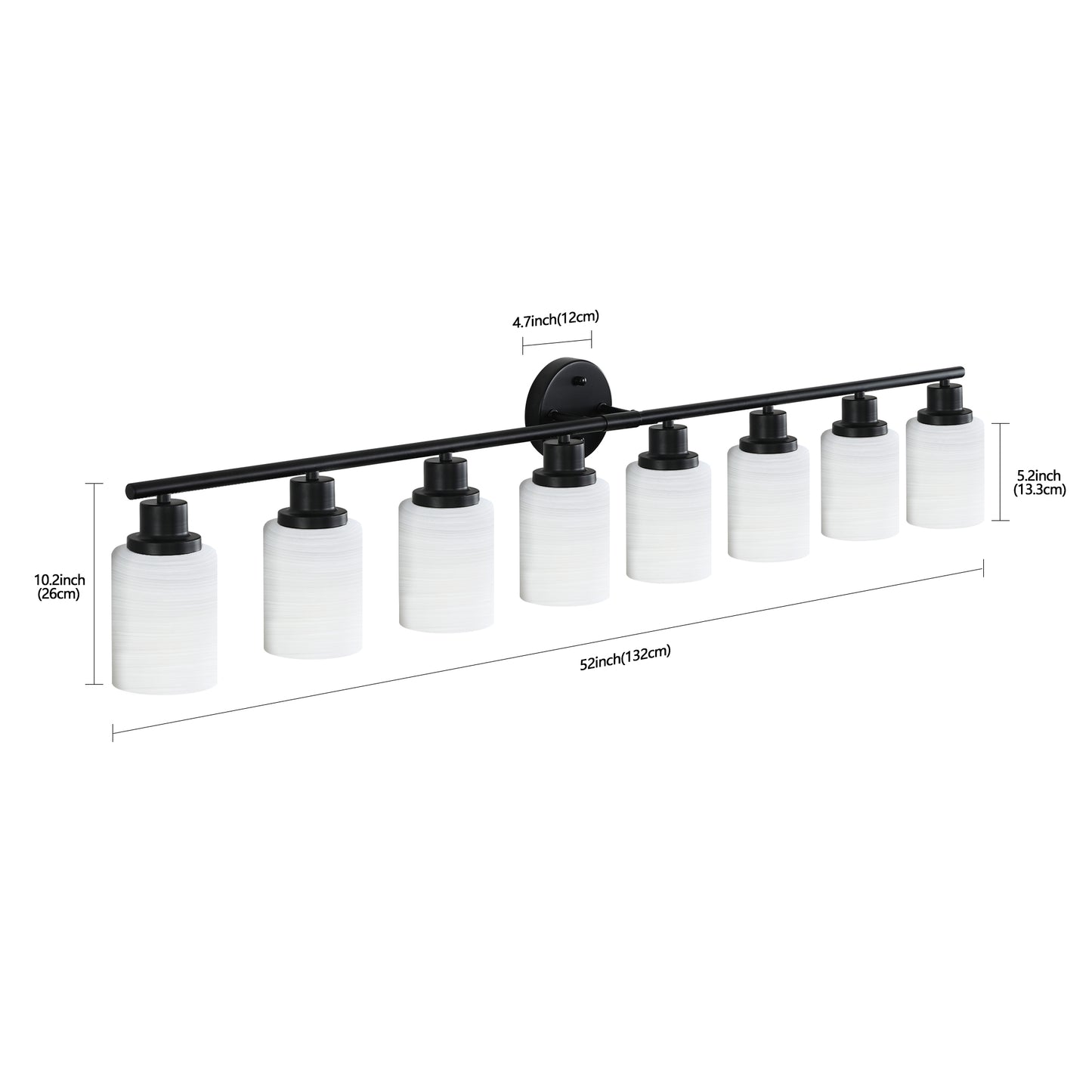 52' Modern 8-Light Vanity Bathroom Mirror Light, Frosted White Glass with Black Iron Frame, Contemporary Wall Sconce for Bedroom, Bathroom, and Dressing Room (Bulb Not Included)