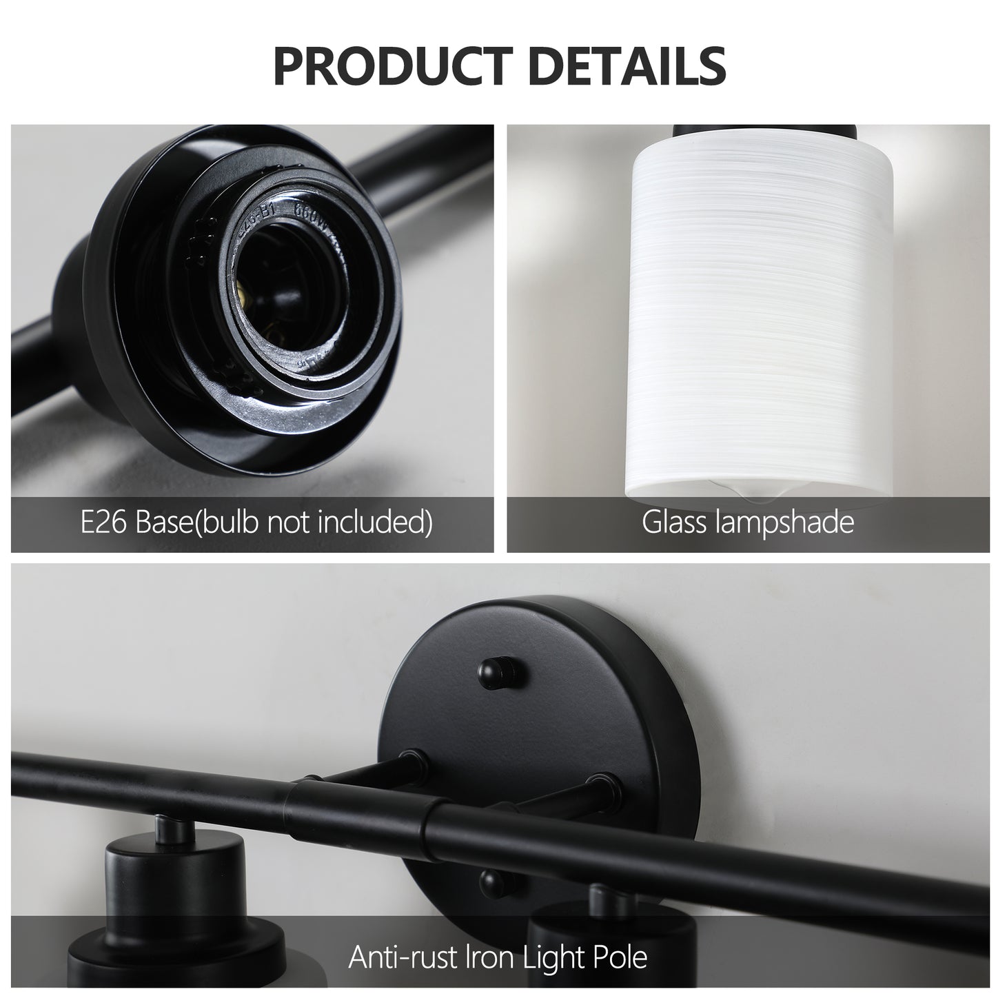 - High-quality materials: The use of high-quality white frosted glass, light transmission is soft and not dazzling, while the black iron frame is strong and durable, to ensure the service life of the product.