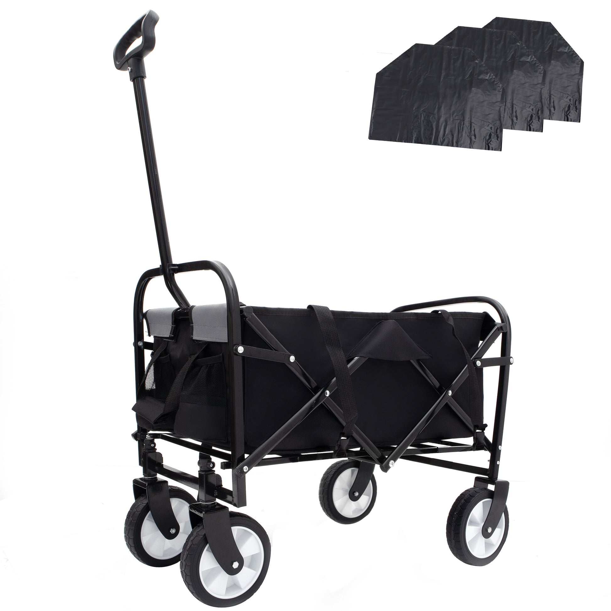 Minimeetall Multi-use Bag,Collapsible Foldable Wagon Cart Beach Wagon Heavy Duty Utility Cart Utility Wagon Grocery Cart for for Camping 3pcs plastic Liner bag /Cover , black