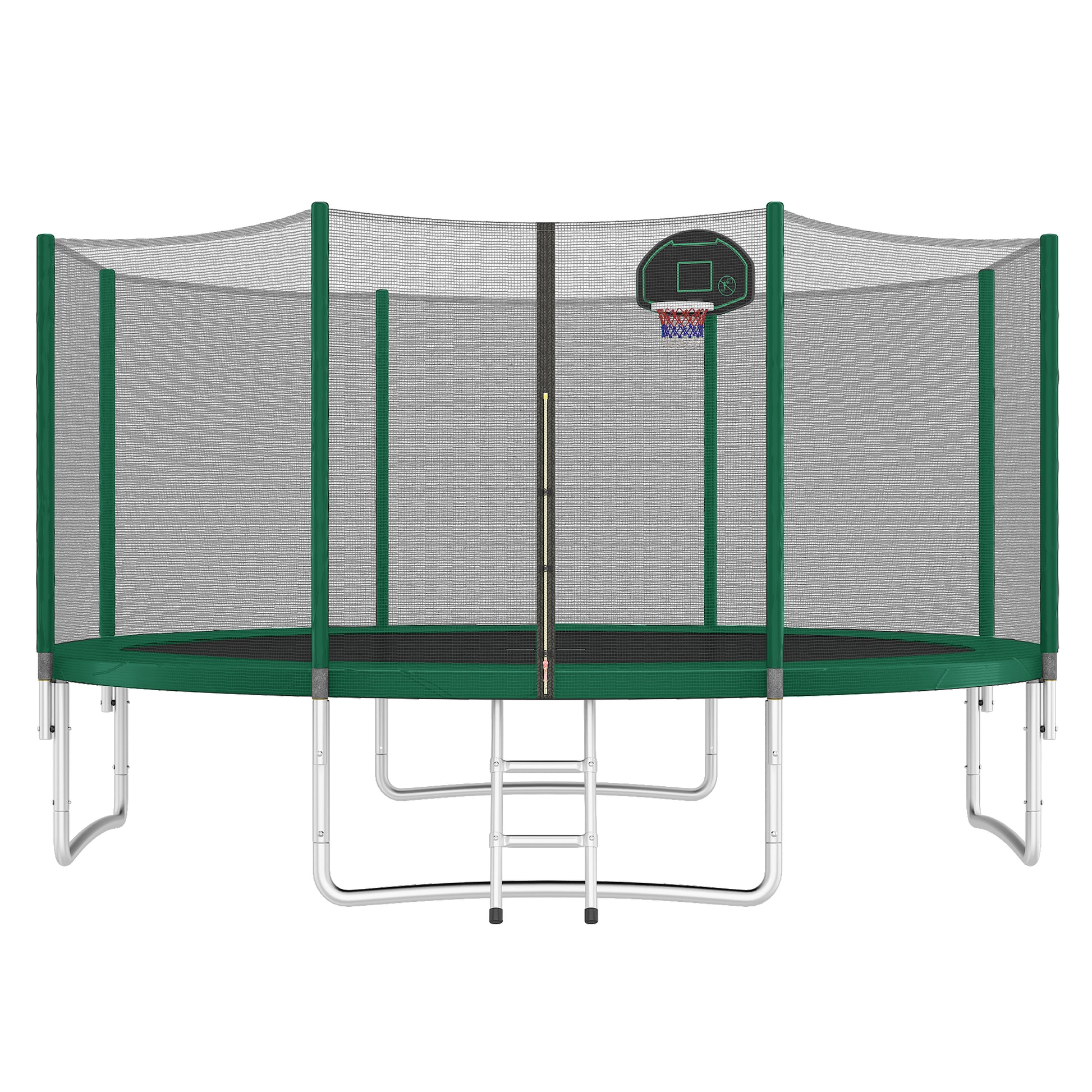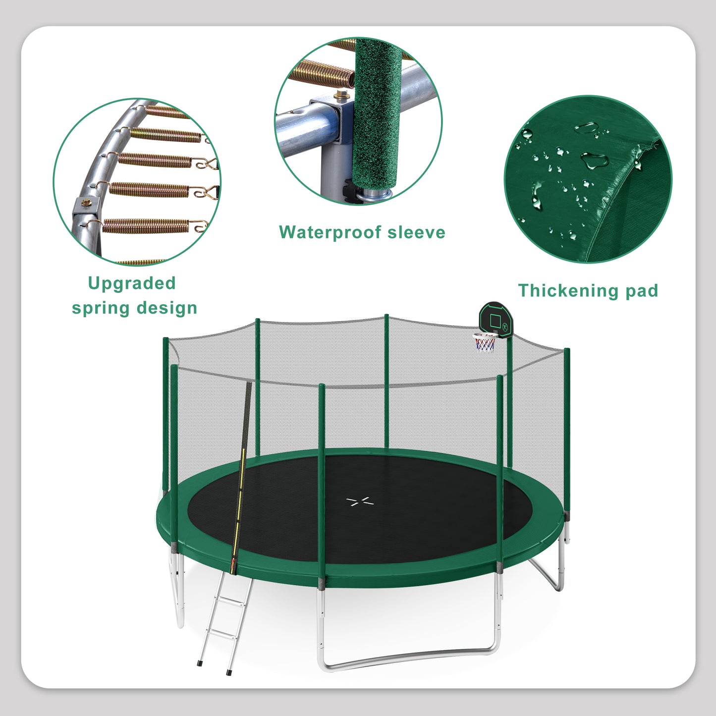 14FT Trampoline for Kids with Safety Enclosure Net, Basketball Hoop and Ladder, Easy Assembly Round Outdoor Recreational Trampoline