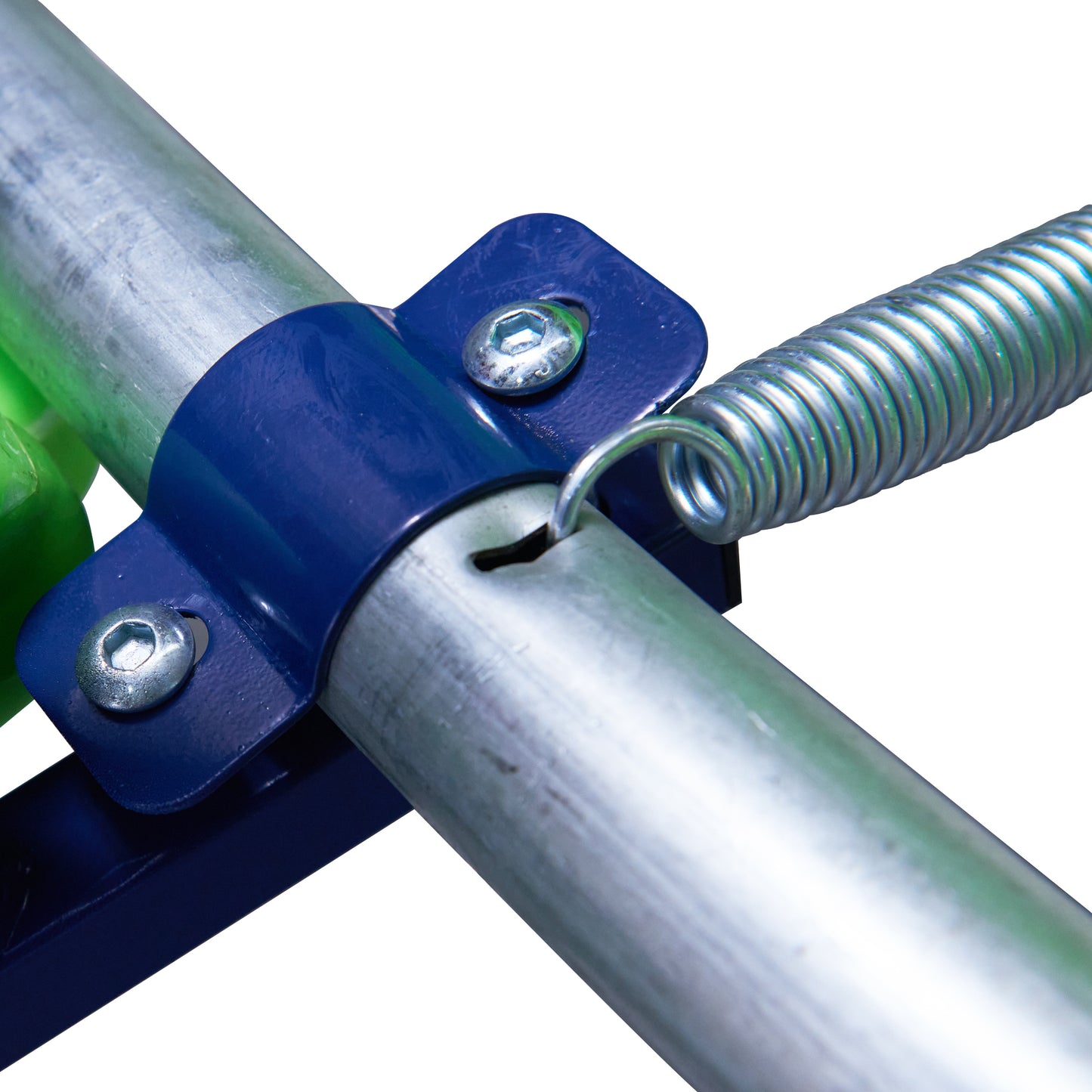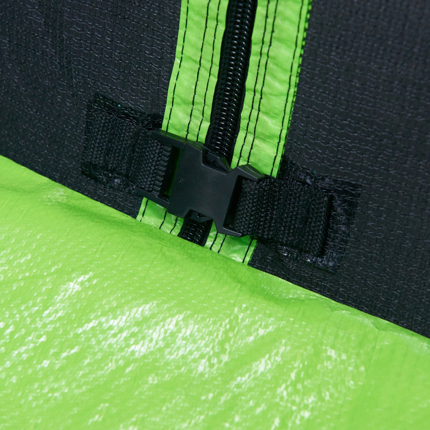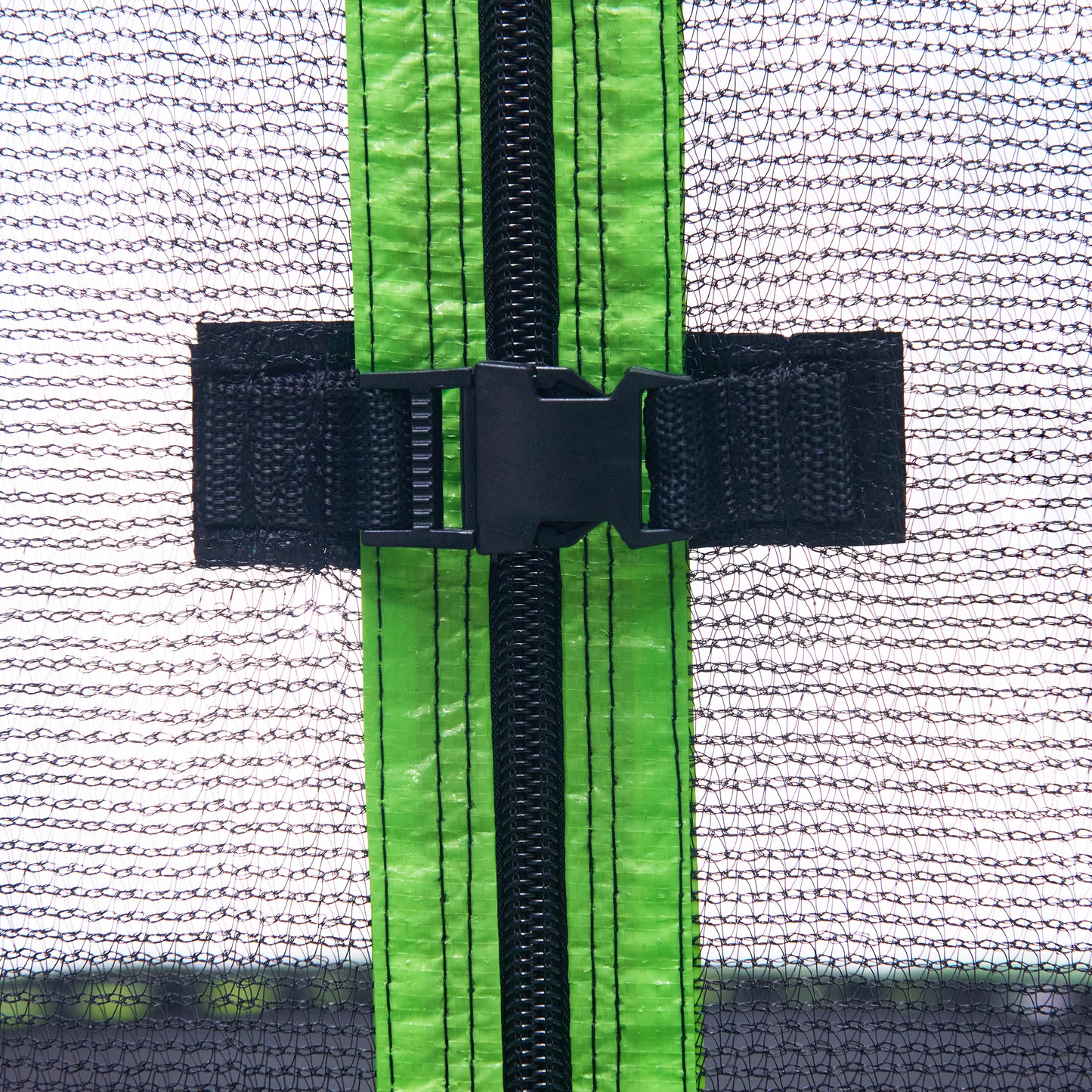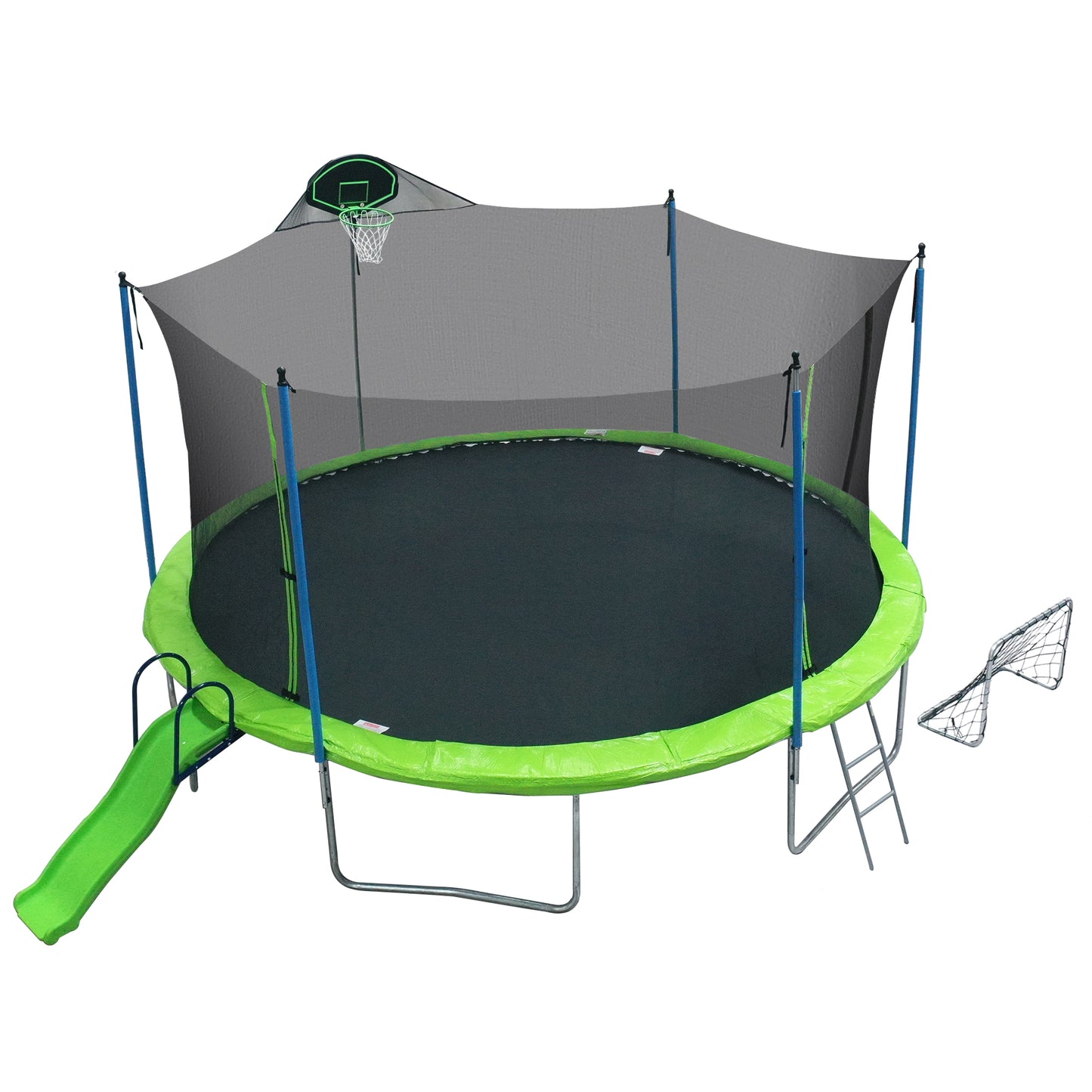 Safeseal System - This 16FT trampoline with enclosures feature a 360-degree safety net that is securely attached to the jumping mat all the way around, reducing the risk of an arm or leg falling through. A full enclosure with a zipper door surely lends you peace in mind. The rust-resistant steel 2-step ladder helps you get onto your trampoline quickly and safely. This trampoline with a plastic slide, more than a function for children to play, fence is a double-door design, up and down more convenient Premium Bouncing Experience - High-strength trampoline mat woven together that able to handle constant flexing, making it durable and soft on your feet. 108 galvanized springs evenly stretched around the mat ensure a smooth and responsive bounce. Built with Durability - Heavy gauge galvanized steel frame forms 6 W-shaped legs provide stable base for the jumping zone. The joins are press-fitted onto each frame piece to reduce frame noise and movement between sections and ultimately, reduces overall wear and tear. Easy Assemble & Take Down: This soccer goal frame is detachable. This folding portable football goal is easy to set up in minutes anywhere anytime for training, backyard pickup games, club practices, and league play.Great for kids youth soccer training This trampoline With a small football goal ,4 Ground stakes to secure the goal in place, provides extra stability. Practice soccer goals with family and friends in the backyard, everywhere is your field Assembly Details - We have designed this trampoline to be as easy as possible to assemble, we recommend two or more people for assembly. Quick tip: view the assembly sequence to reduce the construction time. MAX LOAD:286lbs Trampoline jumping pad (pp material) that is wear-resistant. The trampoline will not fade when it is used outdoors (in order to keep the trampoline's new appearance when it is not in use, it is best to put on a protective cover) ,Add a triangle net around the backboard to keep the ball f