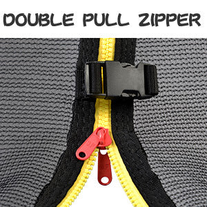 - Safe Enclosed Trampoline – 360 degree enclosure net creates a safe roomy space for entertaining activities, while the double pull zippers allow for easy access in and out of the trampoline. Curved foam padded poles prevents unexpected knock while jumping and totally no gap between foam pad and jumping mat.