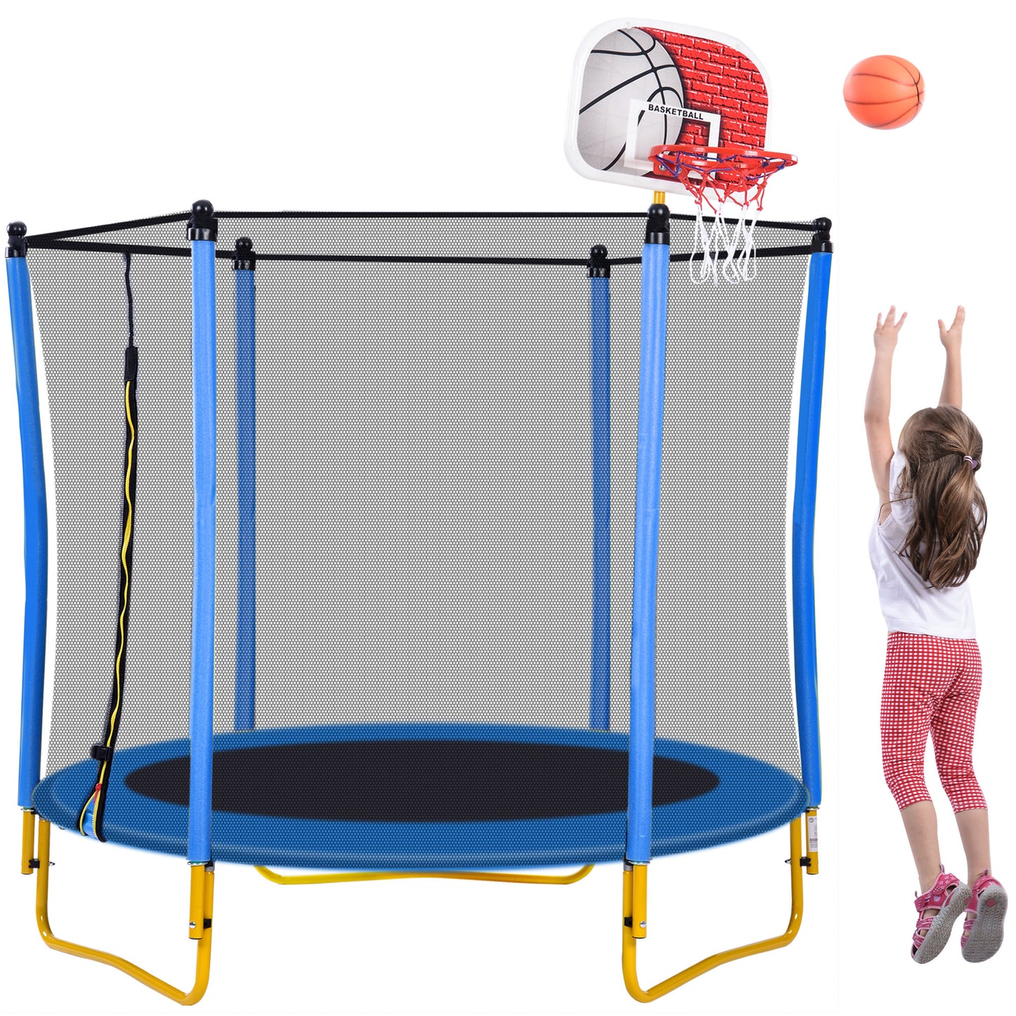 5.5FT Trampoline for Kids - 65' Outdoor & Indoor Mini Toddler Trampoline with Enclosure, Basketball Hoop and Ball Included