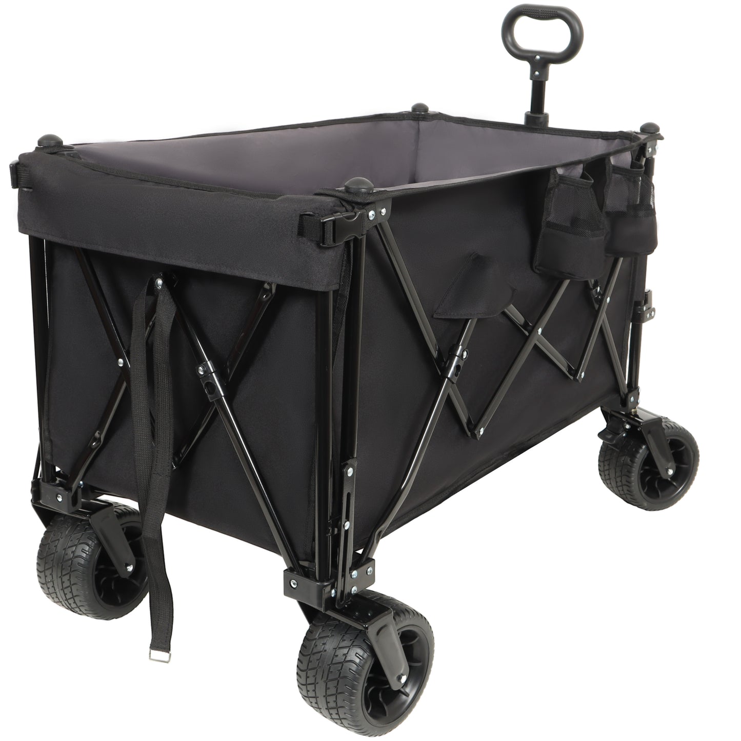 - Versatile Uses This foldable handcart is perfect for a wide range of activities. It works great as a beach cart, for fishing equipment, large sand shovels for children, gardening tools, picnic supplies, and more. The external metal eyelets or lashing points allow you to secure the load with straps (not included), ensuring a safe and secure transport. The wagon also serves as an ideal companion for outings with kids, shopping, festivals, or gardening.