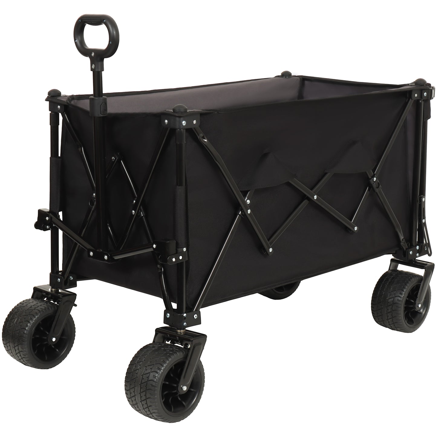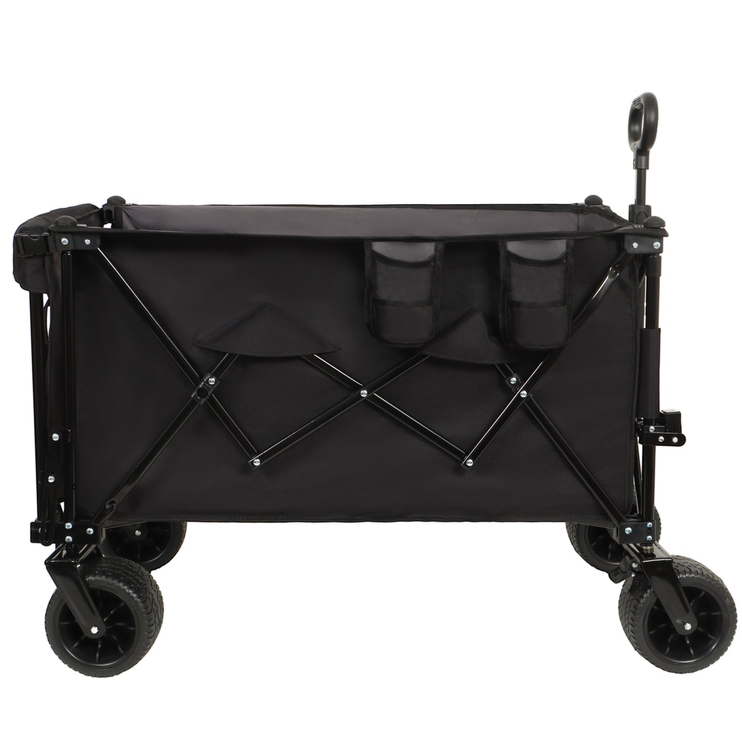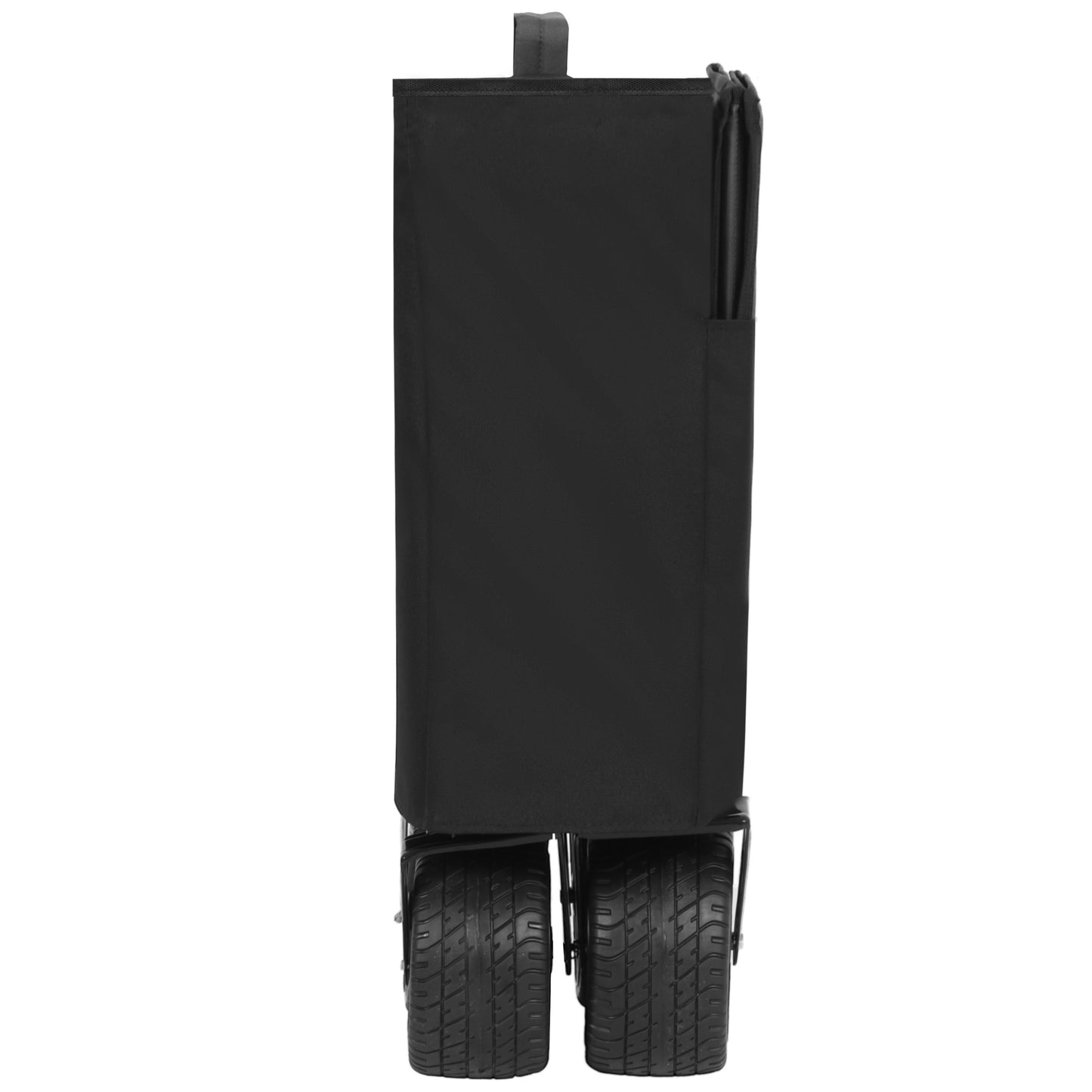 - Product Description The foldable transport wagon is designed with an exceptionally compact folding size of approximately 14.17' x 9.65' x 27.56', featuring a practical tailgate. It can carry up to 480 lbs of cargo and items up to 80 inches long (with even load distribution). The support surface of the wagon can be easily expanded by 30%, and the tailgate can be opened with just a few simple movements. This extension can hold up to 66 lbs, allowing you to transport longer items.