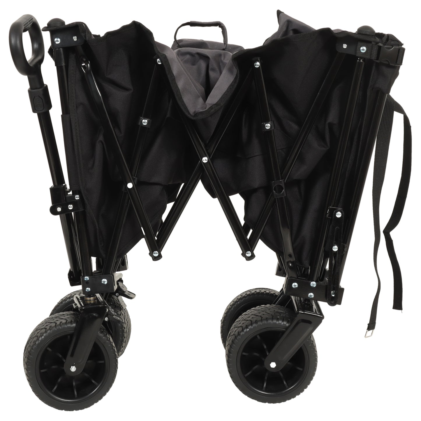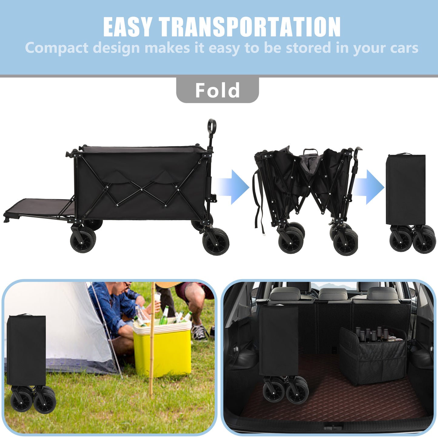 Foldable Wagon with Extended Tailgate, Extra Long Extender Wagon Cart,Beach Wagon Cart Heavy Duty 480LBS with Large All-Terrain Beach Wheels, Black- Gray