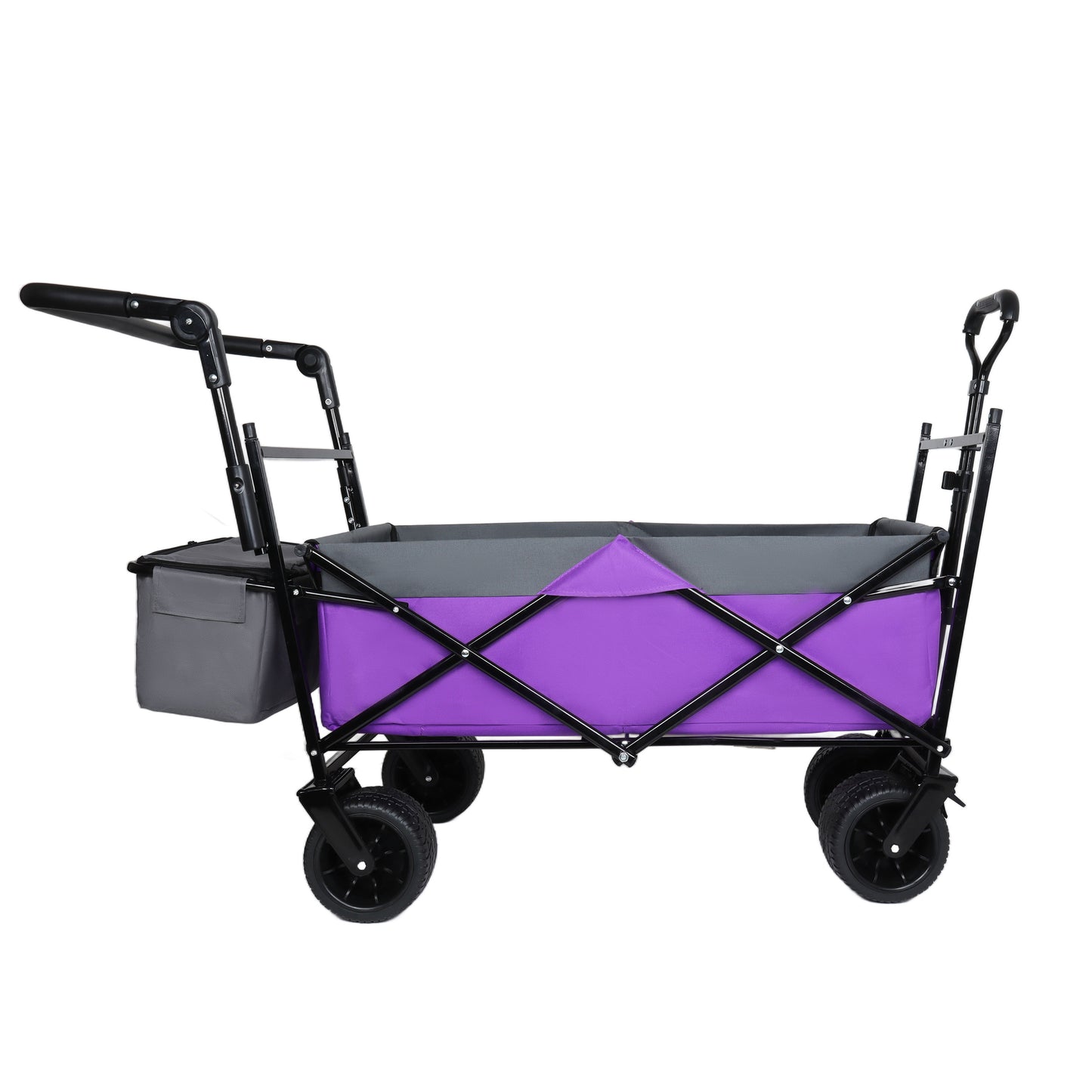 With Push Handle, 480Lbs Collapsible Wagon with Canopy, Wagon cart with 7' All-Terrain Wheels, Lightweight Foldable Wagon, Large Capacity for Camping, Shopping, Sports, and Garden Use, purple