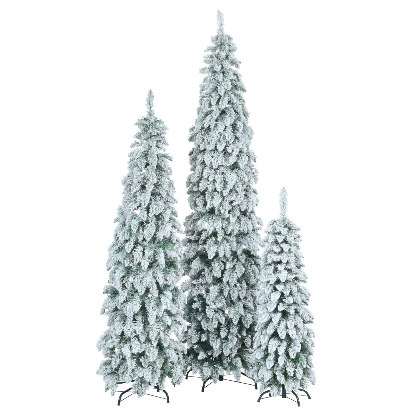 8FT, 6FT, 4FT Pre-Lit Pencil Christmas Trees, 3-set Slim Artificial Christmas Tree With Snow Flocking, Xmas Holiday Decoration Tree, 1455 Branch Tips, 520 LED Lights, 11 Lighting Modes