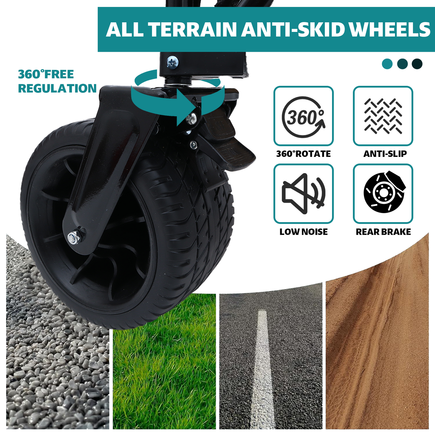 - All-Terrain 360-Degree Swivel Wheels: Equipped with 7-inch wheels that can rotate 360 degrees, this cart is perfect for navigating various terrains, making it easy to maneuver on any surface.