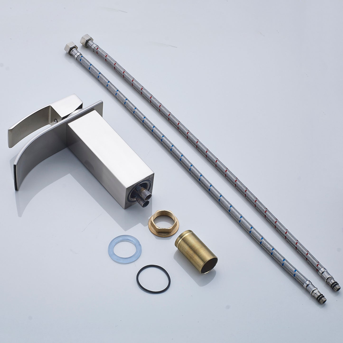 - Bathroom Faucet Brushed Nickel Modern Waterfall Bathroom Sink Faucet