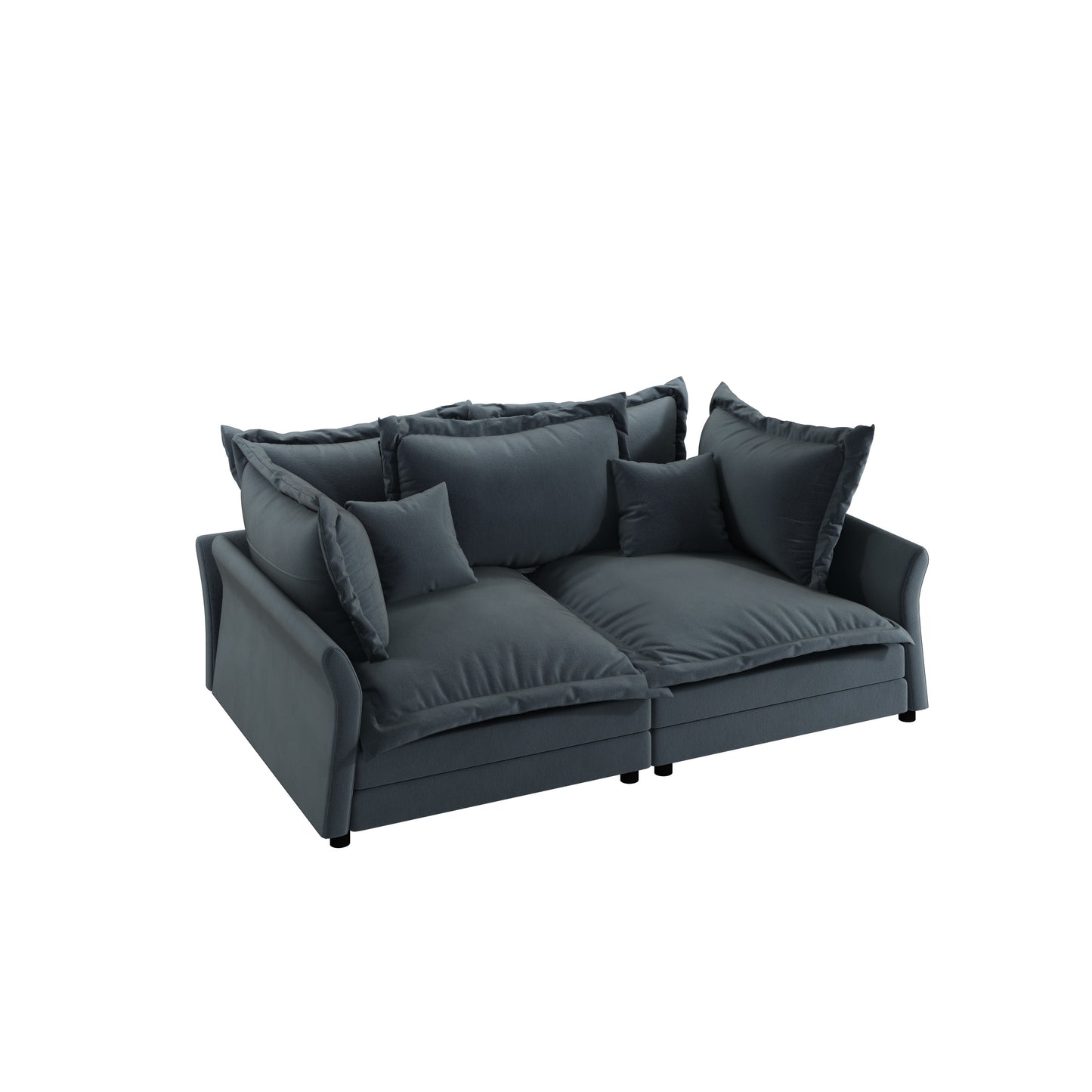 90.55' Modern Comfy Upholstered Sofa Cloud Couch, Deep Seat Couches with Multiple Large Soft Pillows,Convertible Deep Seat Chaise Langue for Living Room Bedroom,Apartment,Office,GREY