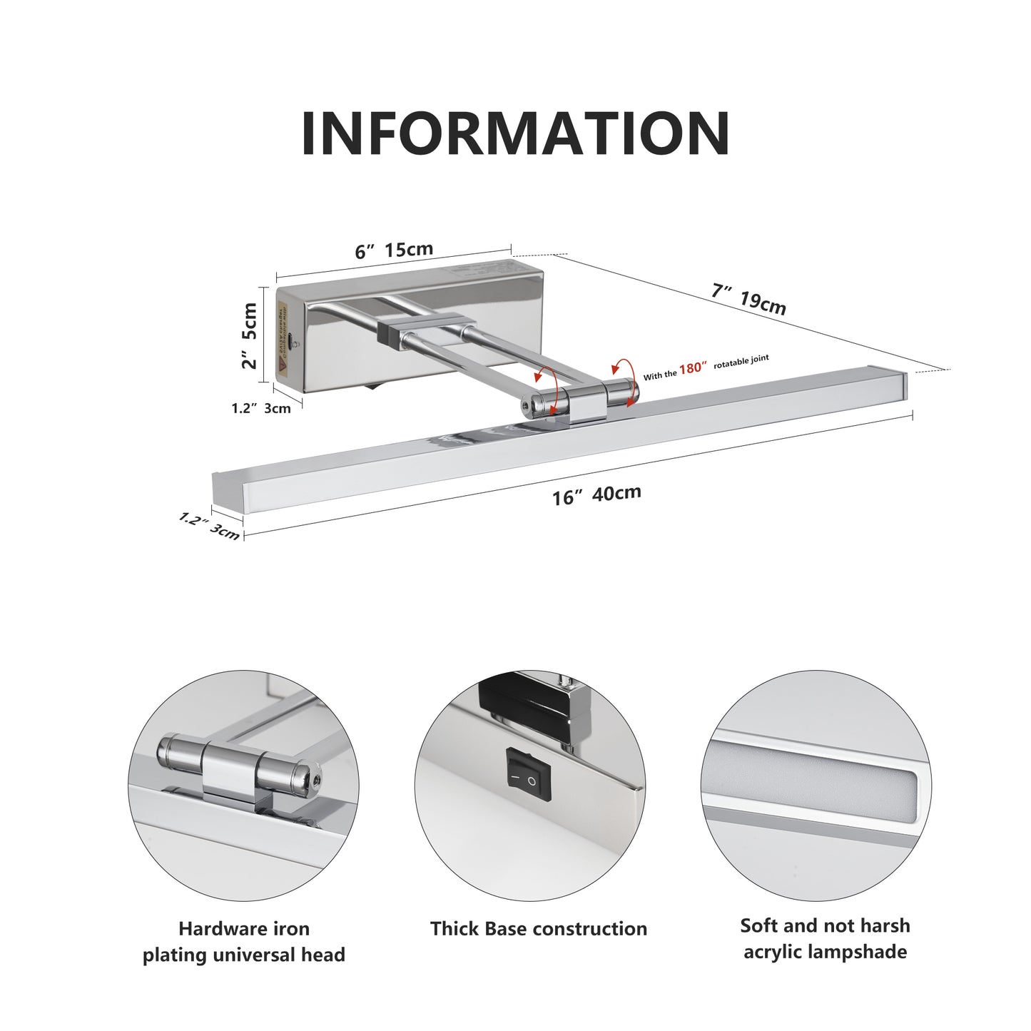 Battery Picture Light, 16 inch Wireless Picture Light for Painting with Remote,Full Metal Rechargeable Art Light,Wall Sconce Display Lighting for Portrait, Photo Frame,Gallery, (Chrome)