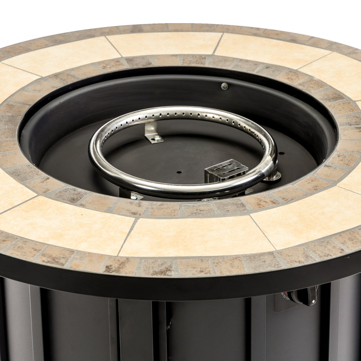 30' Propane Gas Fire Pit Table, 50000 BTU Round Steel Fire Pit with Mosaic Ceramic Tabletop for Outside Patio Deck Garden Backyard- Black