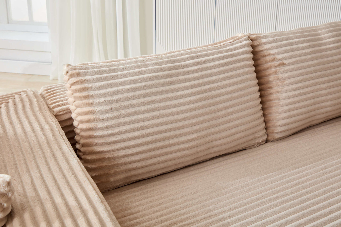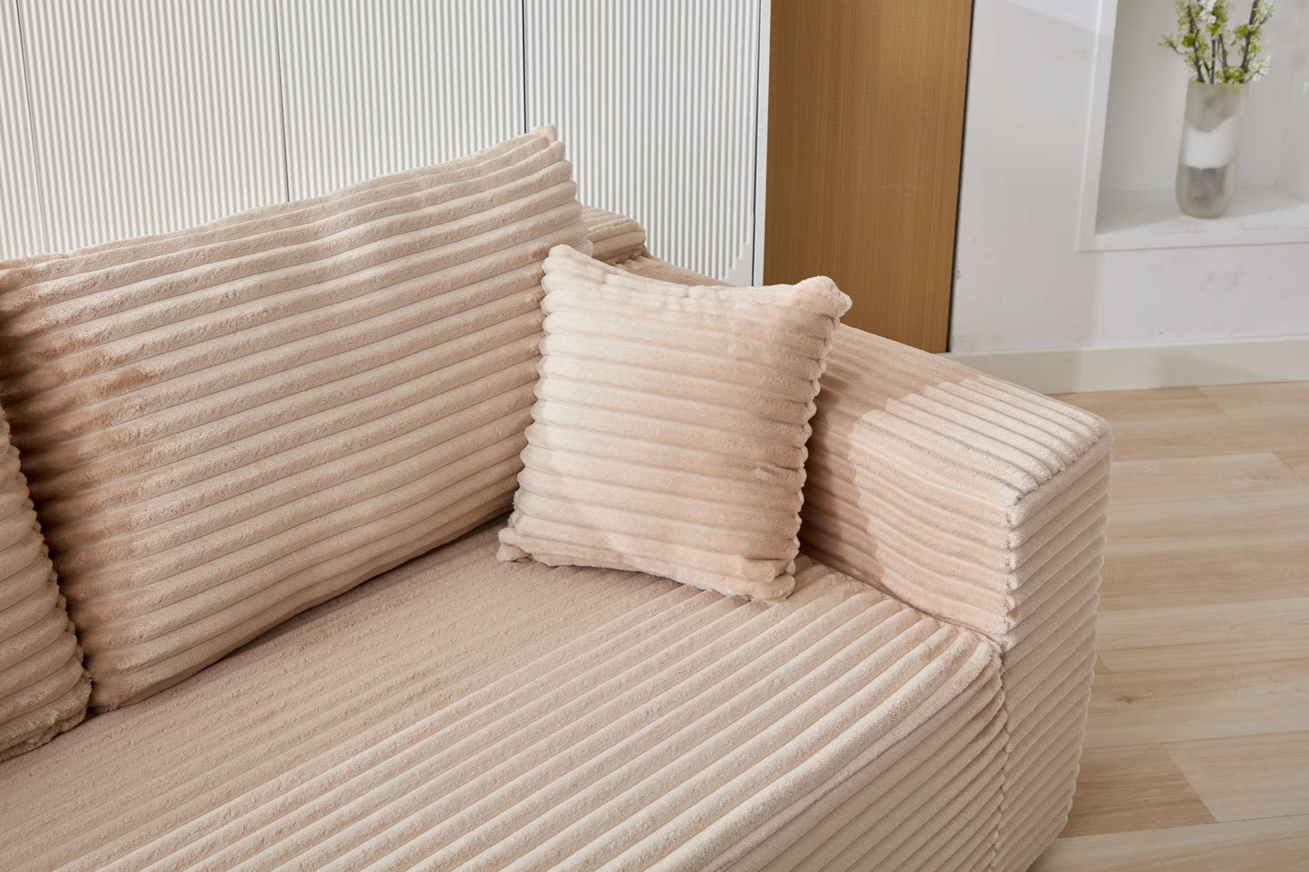 Compression Sectional Couch with Comfy Chaise, Boneless L Shape Sofa with Deep Seat, Minimalist Modular Couches Sleeper for Living Room Bedroom Apartment Lounge,corduroy,Beige