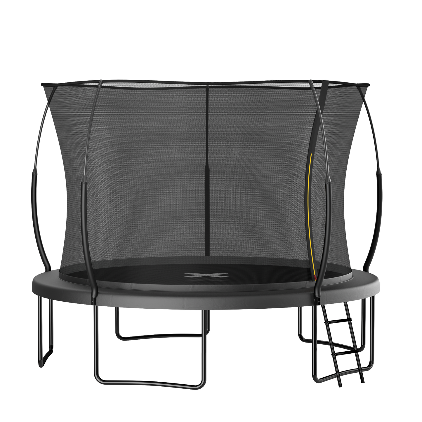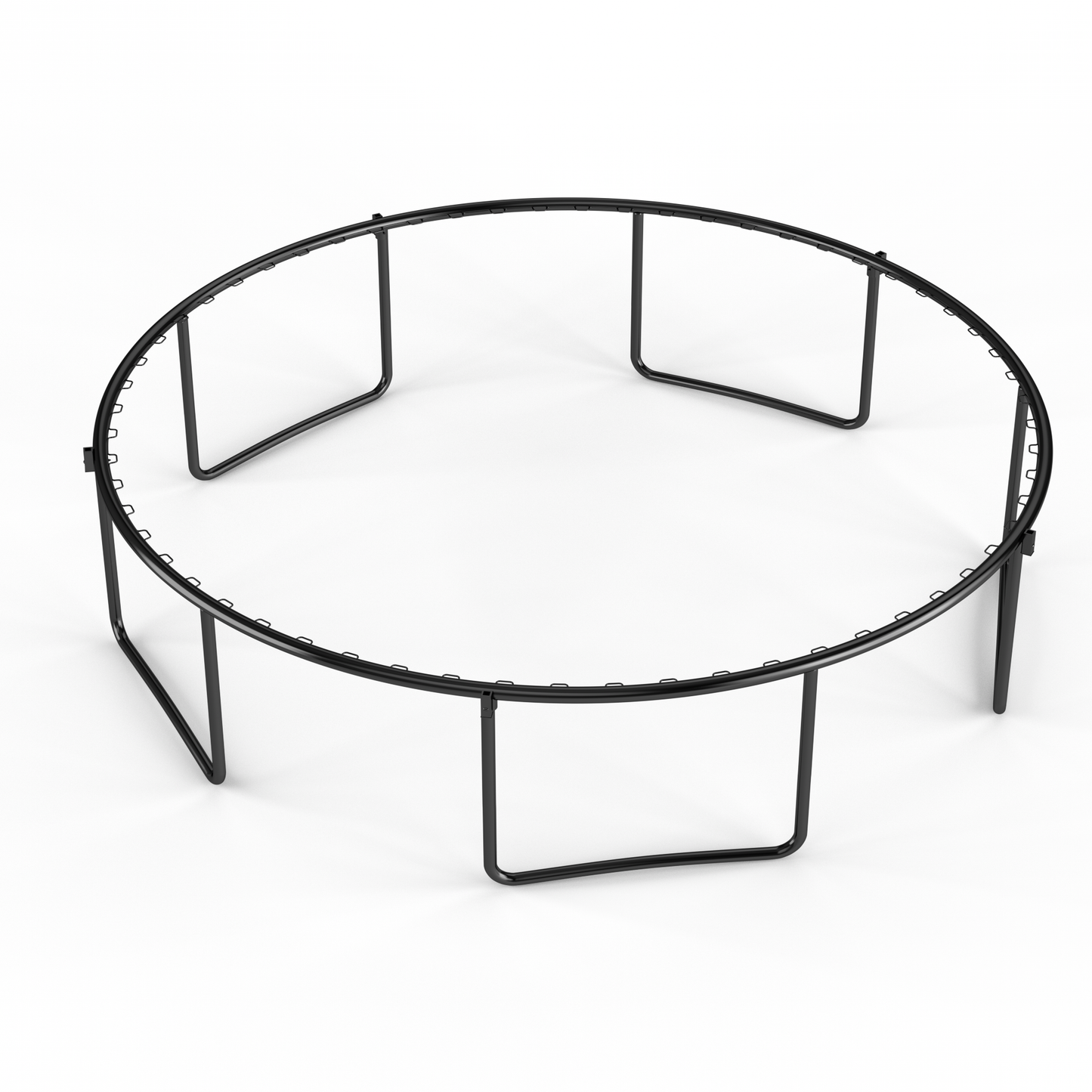 - Our outdoor trampolines have galvanized steel frames, the legs and T-connectors powder coated for long time anti-rust outside. ensuring durability, weather resistance, and rust prevention. Equipped with 5 W-shaped leg tubes, it offers enhanced stability and sturdiness.