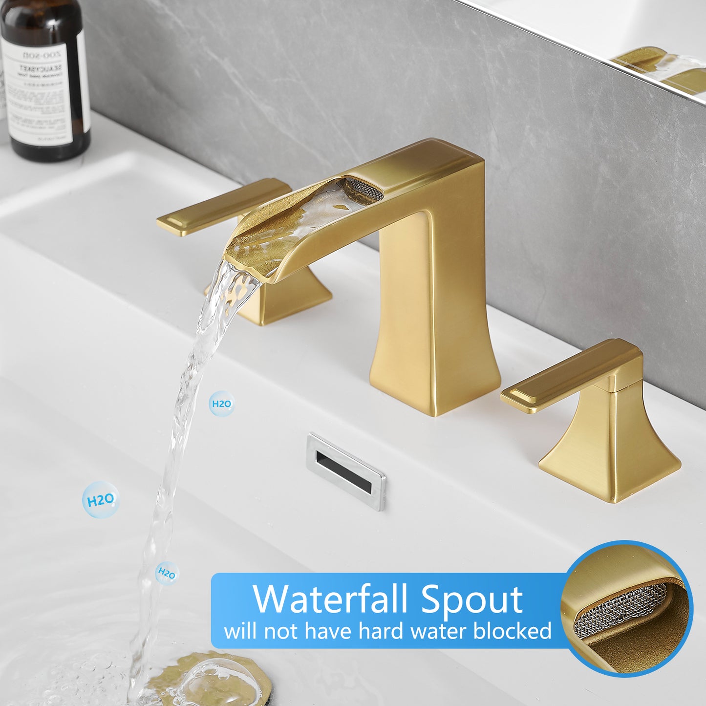 Bathroom Faucets for Sink 3 Hole Gold 8 inch Widespread Bathroom Sink Faucet with Pop Up Drain