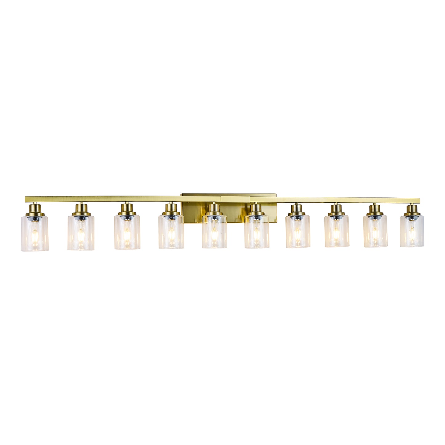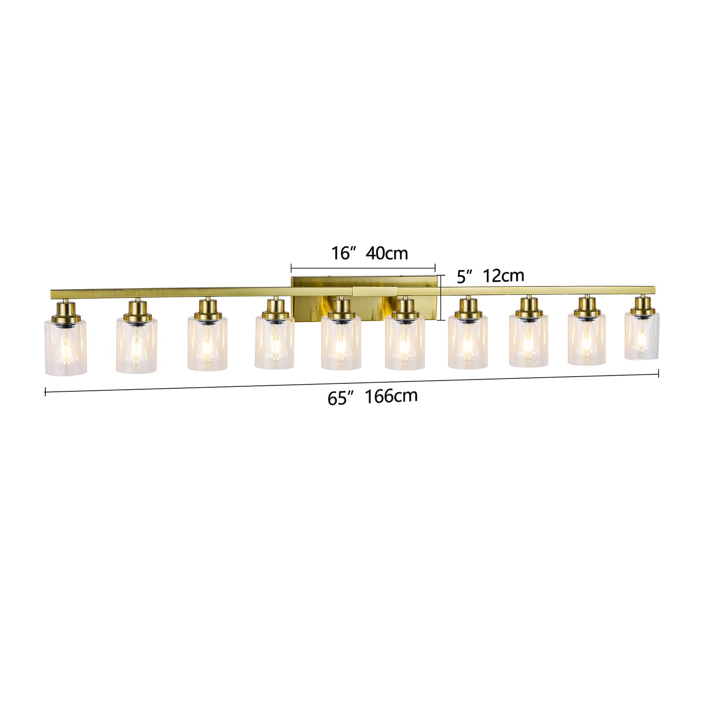 - Sturdy Metal Construction: 10-Light Gold Bathroom lighting fixture is made of sturdy metal in a gold finish with no need to worry about oxidation and color fading. Additionally, High-quality clear glass shades will protect the bulb maximize its light, and increase the classic ambiance in any space. The bathroom vanity light perfectly fits any style. It will bring more exquisite and luxury to your home lighting