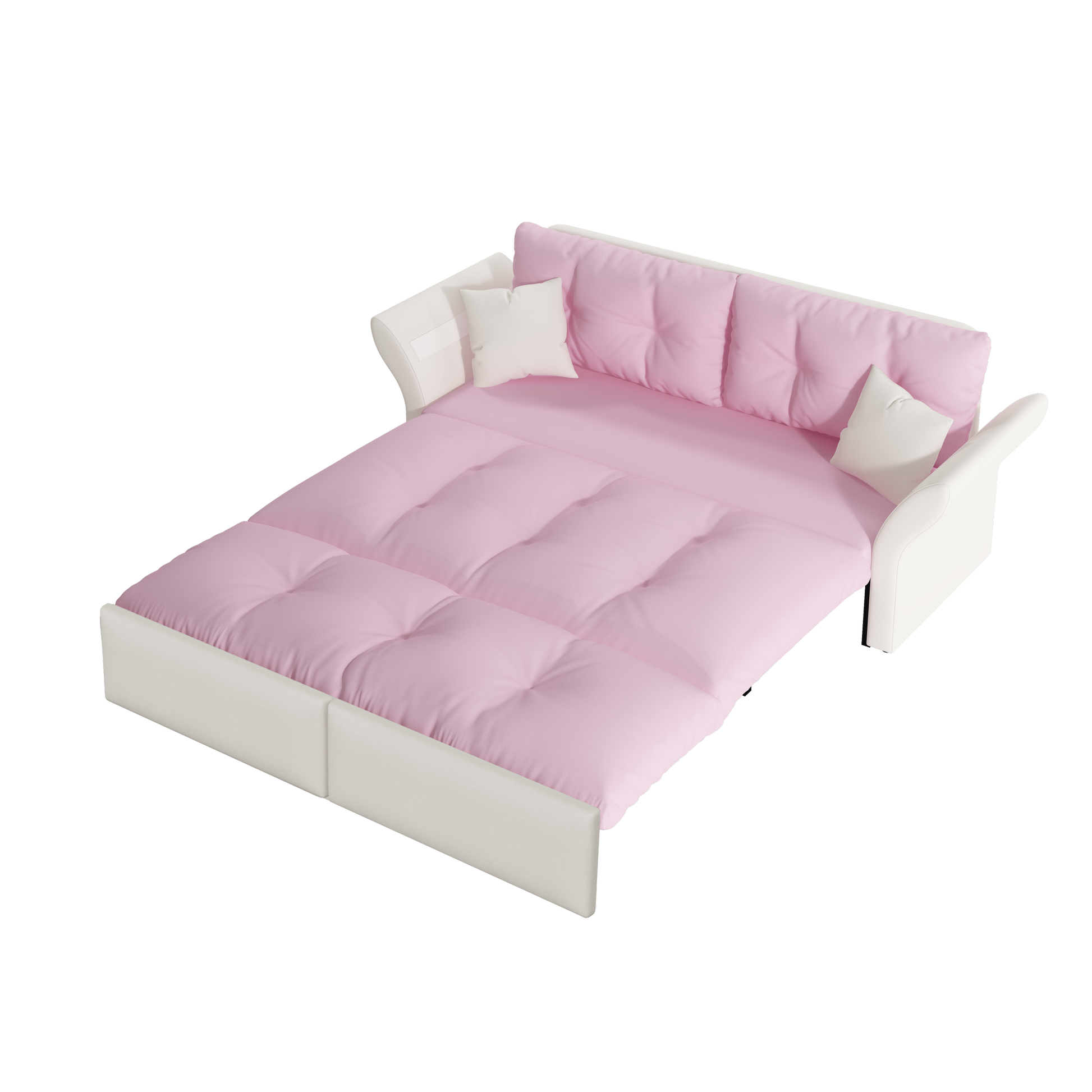 74.8 ' Queen Pull Out Sofa Bed, 3-in-1 Convertible Sleeper Tufted Sofa with 2 Soft Pillows, Multi-Functional Velvet Loveseat Bed, Pink
